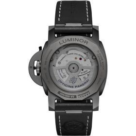 Die Panerai Luminor GMT PAM01460 vereint ikonisches Design mit moderner Funktionalität und verkörpert die unverwechselbare DNA der Marke. Als Sinnbild italienischer Ästhetik und Schweizer Uhrmacherkunst präsentiert sich die Luminor mit ihrem markanten 40-mm-Gehäuse aus Keramik und der charakteristischen, patentierten Kronenschutzbrücke. Im Inneren arbeitet das automatische Manufakturkaliber P.900 mit einer Gangreserve von drei Tagen. Ausgestattet mit Incabloc®-Stoßsicherung und einer Frequenz von 28.800 Halbschwingungen pro Stunde steht es für Zuverlässigkeit und Präzision. Neben Stunden und Minuten bietet die Uhr eine kleine Sekunde, eine GMT-Funktion zur Anzeige einer zweiten Zeitzone sowie ein Datumsfenster. Das schwarze, sonnengebürstete Sandwich-Zifferblatt mit weißen Super-LumiNova®-Ziffern und -Indizes sorgt für optimale Ablesbarkeit bei Tag und Nacht. Datum bei 3 Uhr und kleine Sekunde bei 9 Uhr fügen sich harmonisch in das klare Design ein. Die Lünette aus mikro-sandgestrahlter und polierter Keramik unterstreicht den sportlich-eleganten Charakter. Der verschraubte Gehäuseboden aus DLC-beschichtetem Titan mit rauchfarbenem Saphirglas gewährt Einblick in das Uhrwerk. Getragen wird die Uhr an einem schwarzen Kalbslederarmband mit weißen Nähten; zusätzlich gehört ein schwarzes Kautschukarmband zum Lieferumfang. Dank des PAM Click Release Systems™ lassen sich die Armbänder schnell und unkompliziert wechseln. Die Luminor GMT PAM01460 ist damit ein vielseitiger Begleiter, der markantes Design, technische Raffinesse und hohen Tragekomfort perfekt miteinander verbindet.Produktspezifikationen