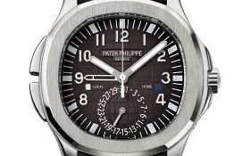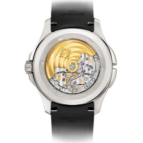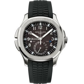 Patek Philippe Aquanaut Kollektion. Herrenuhr aus Edelstahl/Saphirglasboden. Uhrwerk mit Automatikaufzug Kaliber 324 S C FUS, Funktion: Stunden, Minuten, Orts- und Heimat-Tag-/Nachtanzeigen in Fenstern, Zeigerdatum zur Ortszeit, Zentralsekunde.. Durchmesser 40,8 mm. Besondere Merkmale des Zeitmessers: Aquanaut Travel Time: Zwei-Zeitzonen-Mechanik zur Anzeige von Orts- und Heimatzeit. Armband aus Verbundmaterial mit Faltschließe.Produktspezifikationen
