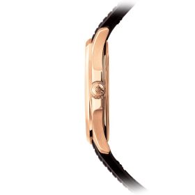 Roségold-Gehäuse, braunes Zifferblatt mit Prägedekor, schrokobraunes Armband aus Verbundmaterial, Faltschließe aus Roségold, SaphirglasbodenProduktspezifikationen