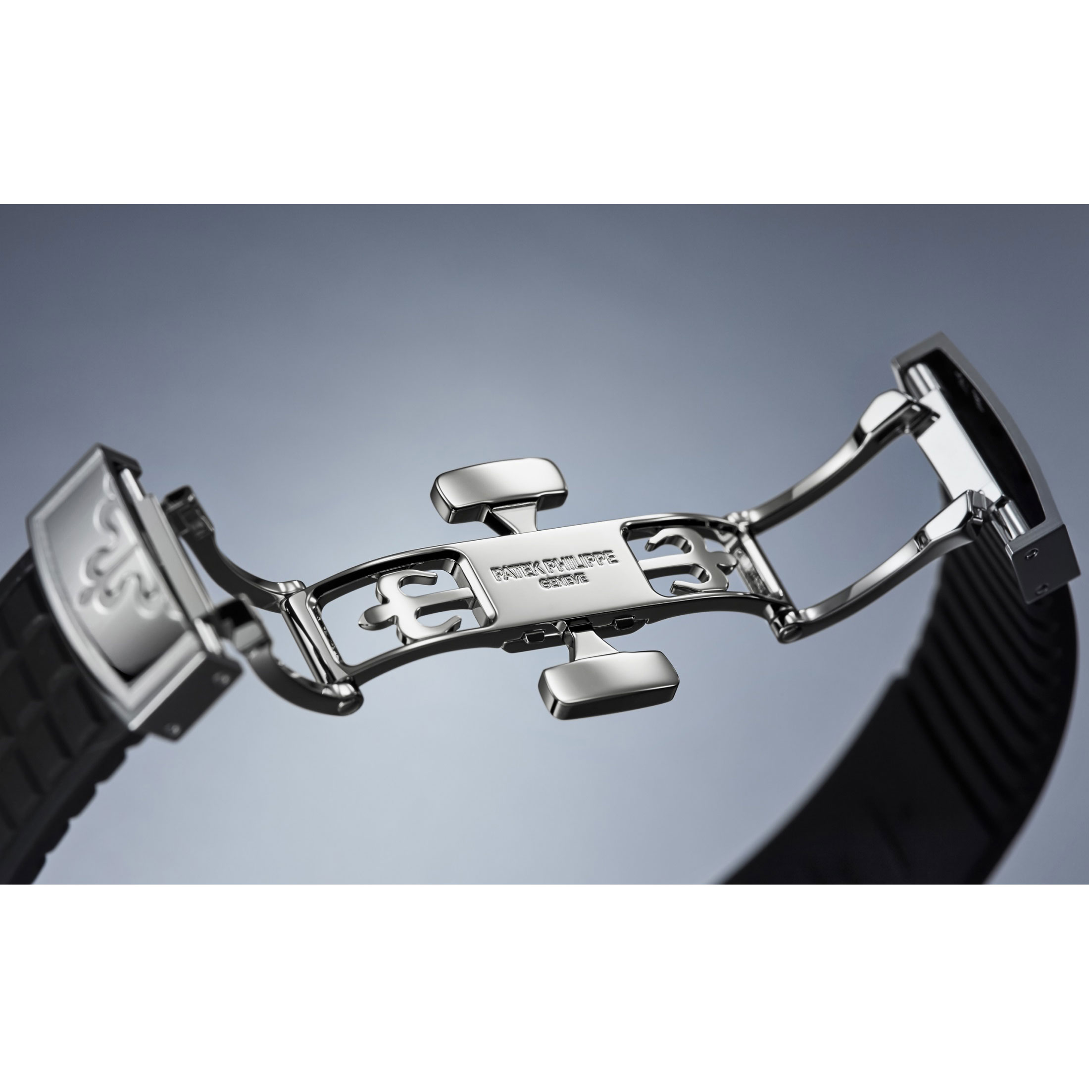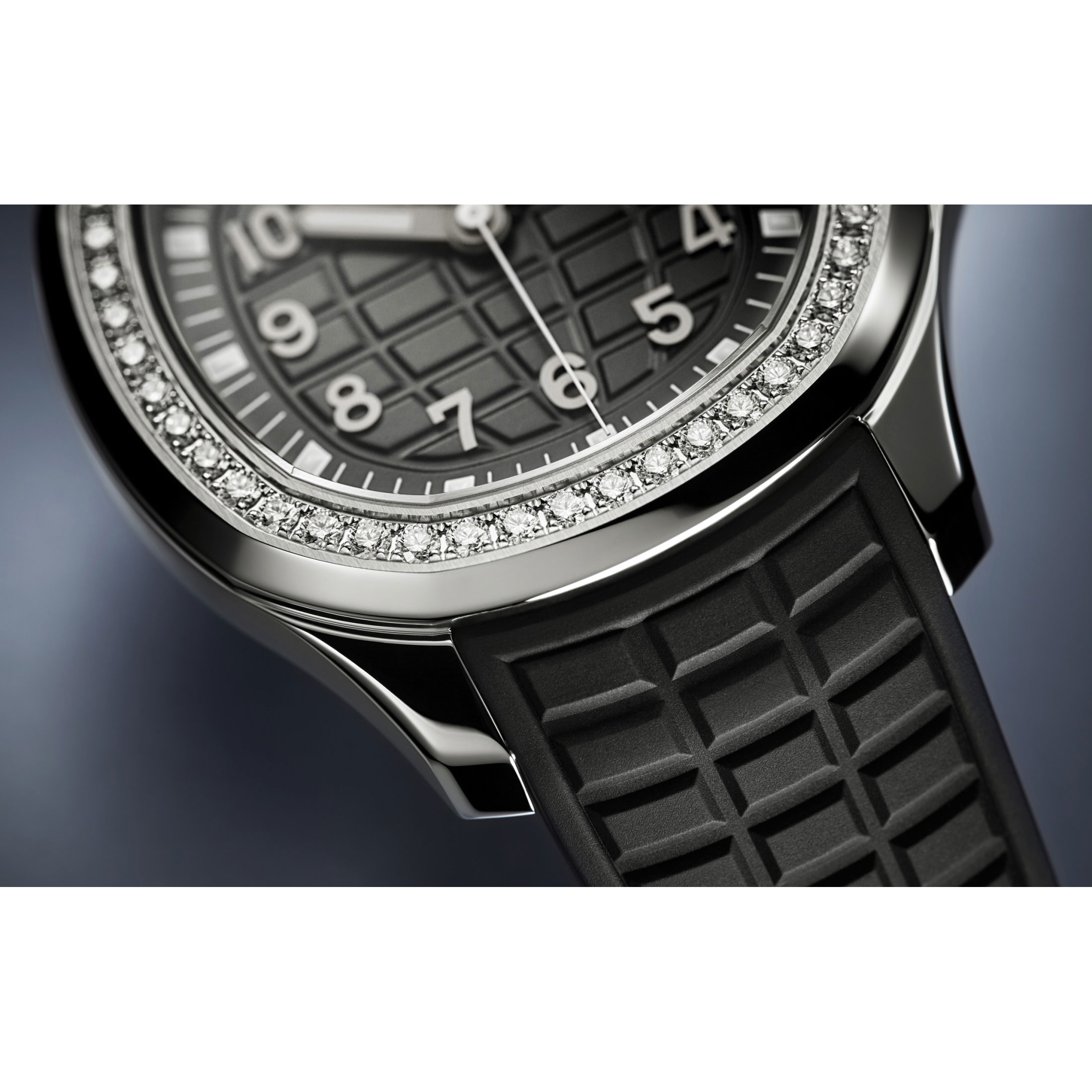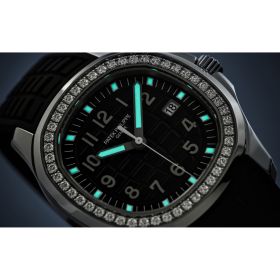 Patek Philippe hat die Stahl-Version der Aquanaut Luce mit Quarzwerk neu interpretiert: Der Gehäusedurchmesser wurde vergrößert (auf 38,8 mm), und das neue Armband aus Verbundmaterial geht fast nahtlos in das Gehäuse über. Als Ausdruck eines sportlich-schicken und modernen Stils wählte die Manufaktur bei diesem Vorzeigemodell elegantes Schwarz für das Zifferblatt und das farblich abgestimmte Armband. Das sanft abgerundete, achteckige Gehäuse ist bis 30 Meter wasserdicht und wird durch abwechselnd polierte und satinierte Finissierungen veredelt. Die Lünette erstrahlt im Glanz von 48 Diamanten (ca. 1,11 K). Die patentierte Sicherheitsfaltschließe ist mit vier voneinander unabhängigen Rasten ausgestattet.