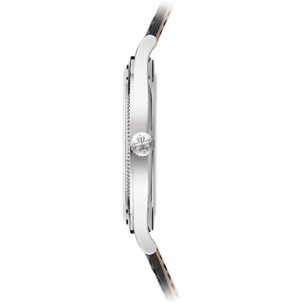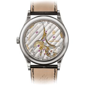 Mit der „Clous de Paris“-Guillochierung auf der Lünette rückt Patek Philippe die berühmte Calatrava wieder ins Rampenlicht. Deshalb wurde der Durchmesser leicht vergrößert und ihr Design in einem aktuellen Stil überarbeitet. Die geschossförmigen aufgesetzten Indexe aus Weißgold sind facettiert und wurden mit Dauphine-Zeigern für die Stunden und Minuten kombiniert. Sie verleihen dem Zifferblatt ein schlichtes, zeitloses Aussehen. In dem ausgesprochen eleganten und feinen Gehäuse aus Weißgold verbirgt sich das neue Uhrwerk 30-255 PS mit Handaufzug und einer Gangreserve von 65 Stunden.Produktspezifikationen