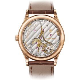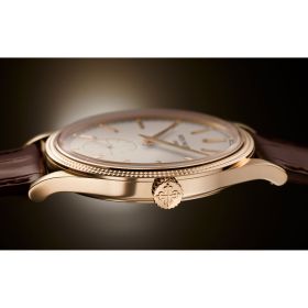 Mit der „Clous de Paris“-Guillochierung auf der Lünette rückt Patek Philippe die berühmte Calatrava wieder ins Rampenlicht. Deshalb wurde der Durchmesser leicht vergrößert und ihr Design in einem aktuellen Stil überarbeitet. Die geschossförmigen aufgesetzten Indexe aus Weißgold sind facettiert und wurden mit Dauphine-Zeigern für die Stunden und Minuten kombiniert. Sie verleihen dem Zifferblatt ein schlichtes, zeitloses Aussehen. In dem ausgesprochen eleganten und feinen Gehäuse aus Roségold verbirgt sich das neue Uhrwerk 30-255 PS mit Handaufzug und einer Gangreserve von 65 Stunden.Produktspezifikationen