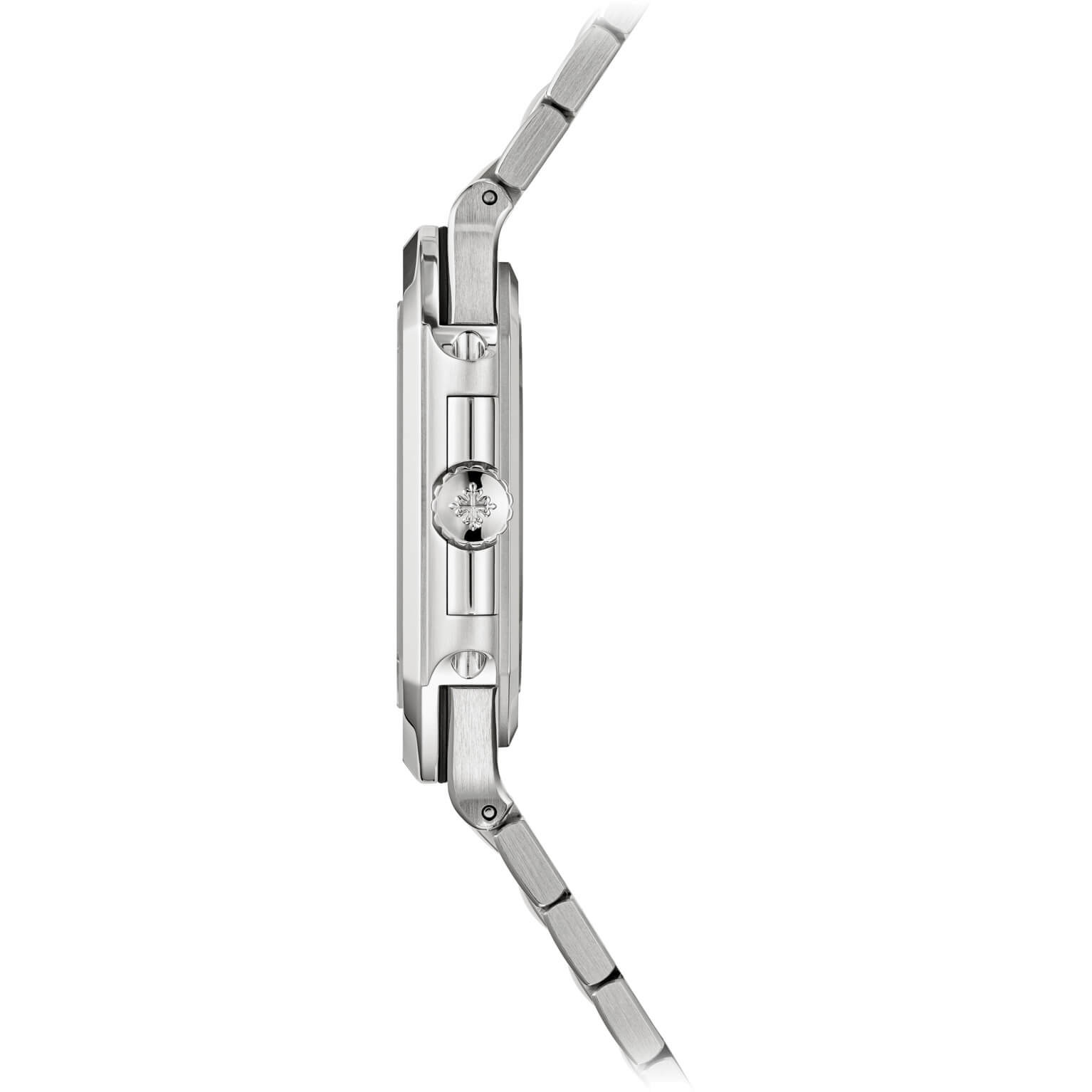 Patek Philippe verleiht dem lässigen Chic mit seinem neuesten Stahlmodell eine frische, moderne Note. Das markante Design besticht durch einen harmonischen Wechsel von vertikal satinierten und polierten Oberflächen. Das neue, eckige Gehäuse mit sanft abgerundeten Kanten schmiegt sich elegant ans Handgelenk und überzeugt durch seine schlanke Silhouette. Raffiniert in Szene gesetzt wird das olivgrüne Zifferblatt mit Sonnenschliff und horizontalem Reliefmuster. Für optimalen Tragekomfort sorgt das Stahlarmband mit einem Verlängerungssystem und der patentierten Patek Philippe Faltschließe. Im Inneren des Modells arbeitet das Kaliber 26-330 S C, dessen 21-karätiger Goldrotor das Zifferblattmotiv aufgreift.Produktspezifikationen