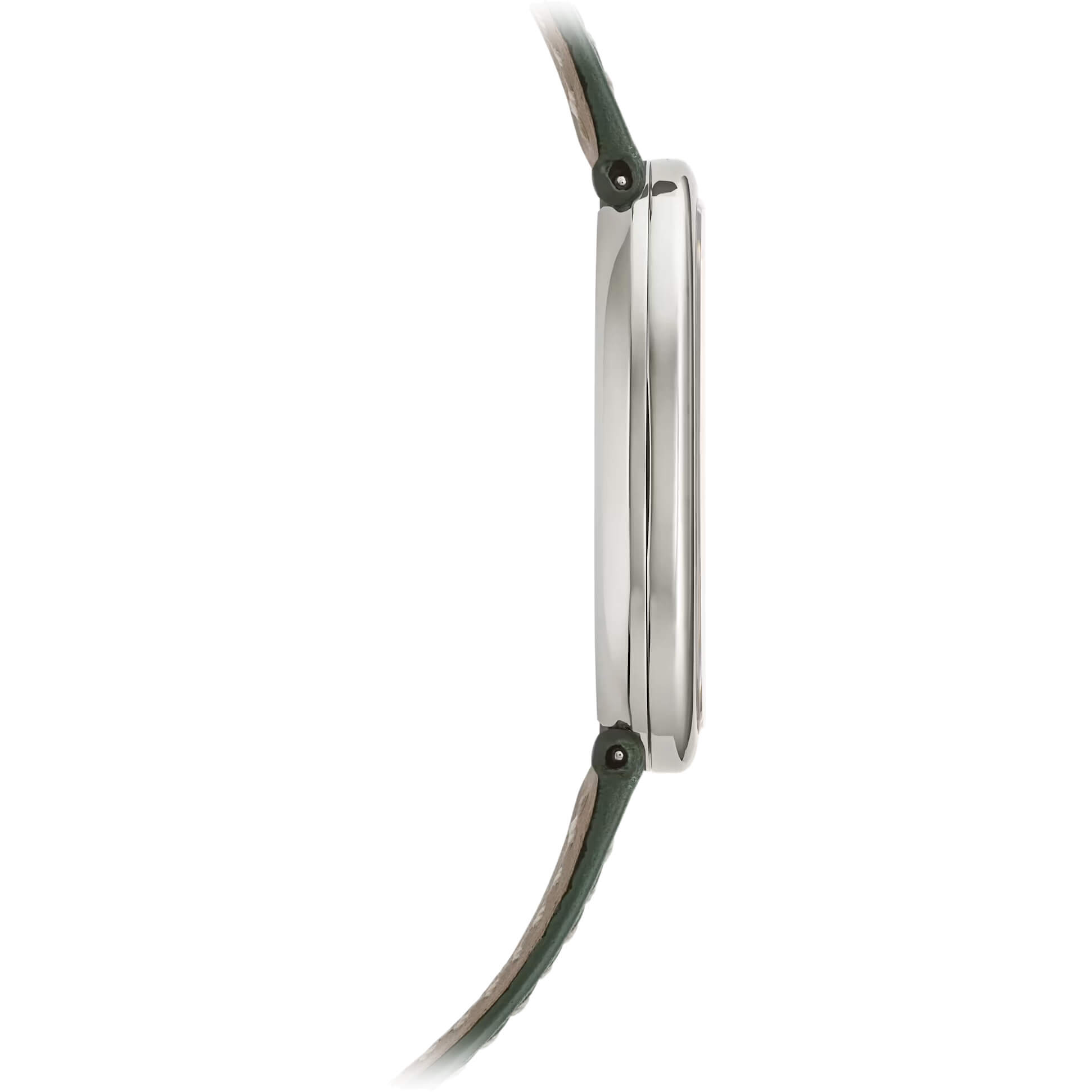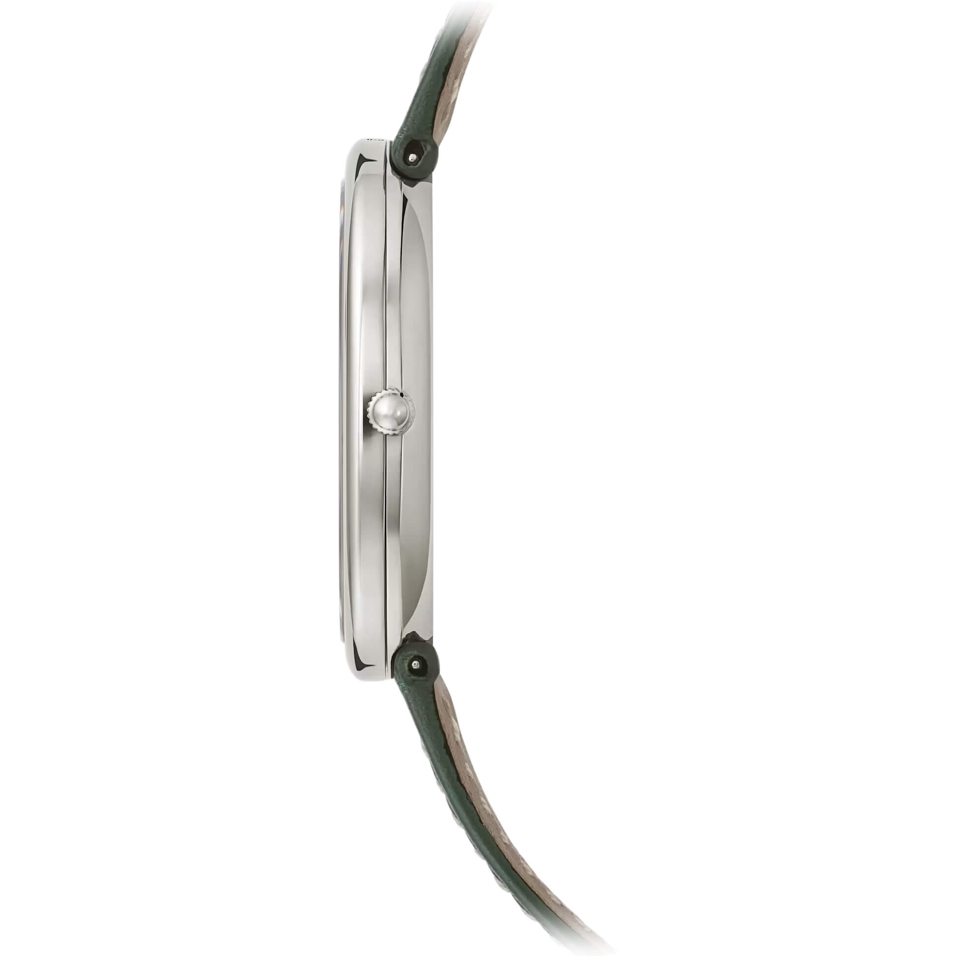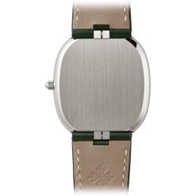 Diese Golden Ellipse besticht durch ihre elegante Zurückhaltung und die harmonische Verbindung aus Form, Farbe und Proportion. Das mittelgroße, elliptische Gehäuse aus poliertem Weißgold folgt den Prinzipien des Goldenen Schnitts und unterstreicht die ikonische, zeitlos ausgewogene Gestaltung dieser Linie. Das sonnengeschliffene Zifferblatt in Olivgrün verleiht der Uhr eine faszinierende Tiefe und eine subtile, lebendige Lichtwirkung. Applizierte Stundenmarkierungen aus Weißgold sowie filigrane Cheveu-Zeiger sorgen für eine klare, reduzierte und zugleich äußerst elegante Ablesbarkeit. Im Inneren arbeitet das ultraflache Automatikkaliber 240 mit dezentralem Minirotor aus 22K Gold. Es steht für höchste Präzision bei minimaler Bauhöhe und bietet eine Gangreserve von bis zu 48 Stunden bei effizientem automatischem Aufzug. Mit einer Bauhöhe von nur 2,53 mm zählt das Werk zu den besonders schlanken Konstruktionen der Haute Horlogerie und überzeugt durch seine technisch ausgereifte, harmonische Architektur. Gyromax-Unruh und Spiromax-Spirale gewährleisten dabei eine stabile und präzise Zeitmessung. Das Weißgoldgehäuse misst 31,1 x 35,6 mm bei einer Gesamthöhe von lediglich 5,9 mm und bewahrt dabei die charakteristische, flache Silhouette der Kollektion. Seine Proportionen verleihen der Uhr eine dezente, aber markante Präsenz am Handgelenk. Abgerundet wird das Design durch ein glänzendes olivgrünes Kalbslederarmband mit kontrastierenden hellen Nähten und einer klassischen Dornschließe aus Weißgold. Diese Golden Ellipse verkörpert zeitlose Eleganz in ihrer reinsten Form – reduziert, harmonisch und von subtiler Raffinesse.Produktspezifikationen