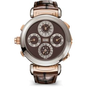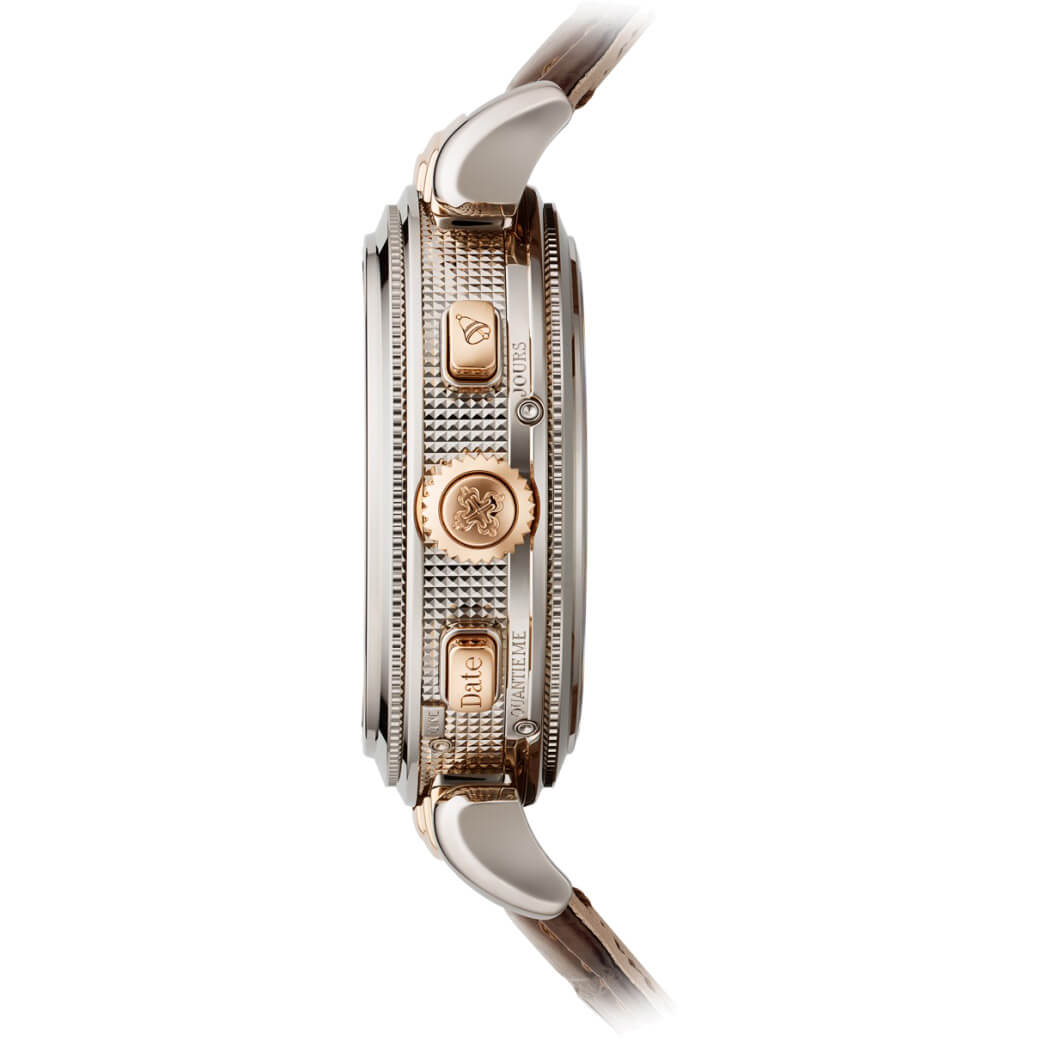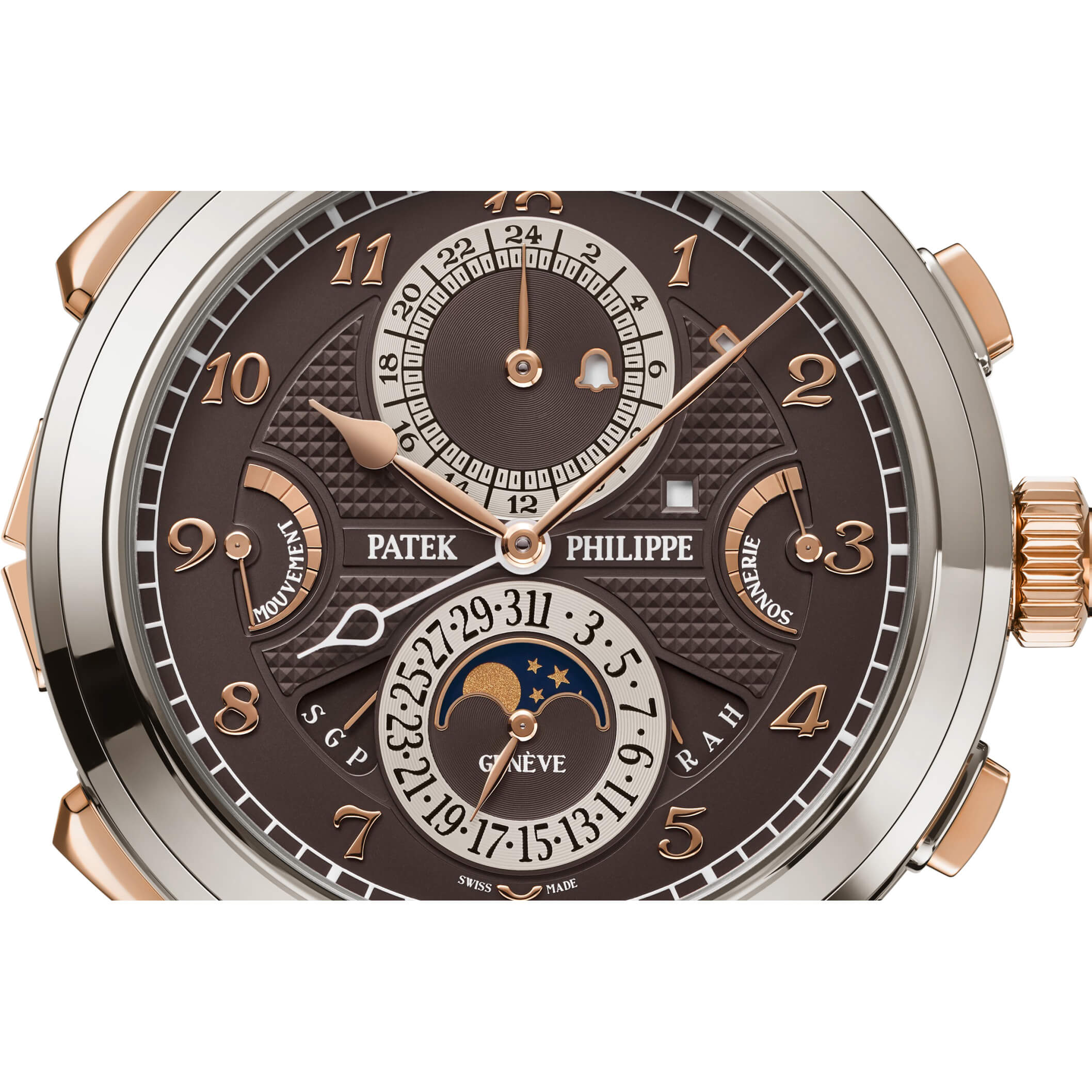 Patek Philippe legt das Design seiner kompliziertesten Armbanduhr neu auf und präsentiert sie zum ersten Mal als zweifarbige Version in Weiß- und Roségold mit opalbraunem Zifferblatt.Produktspezifikationen
