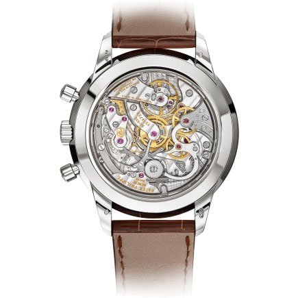 Patek Philippe betont den „Vintage“-Charakter dieses bei Liebhabern schöner mechanischer Uhren beliebten Modells durch ein roségoldfarbenes Opalin-Zifferblatt. Die Ablesbarkeit des Zifferblatts bei Tag und Nacht wird durch die aufgesetzten arabischen Ziffern und die spritzenförmigen Stunden-/Minutenzeiger aus Gold mit anthrazitfarbener Bearbeitung und weißer Leuchtbeschichtung gewährleistet, ergänzt durch eine kleine Sekunde bei 9 Uhr. Das Chronographenkaliber CH 29-535 PS zeichnet sich durch eine traditionelle Architektur aus. Hinzu kommen sechs patentierte Innovationen, darunter optimierte Zahnprofile, eine bessere Einstellung der Getriebe-Durchdringung sowie selbstregulierende Nullstellhämmerchen. Darüber hinaus weist dieses Uhrwerk einige technische Besonderheiten auf, die alle eine optimierte Funktionalität und Leistungsfähigkeit zum Ziel haben. Die Ästhetik und die sorgfältige Verarbeitung sind durch den transparenten Saphirglasboden sichtbar.Produktspezifikationen
