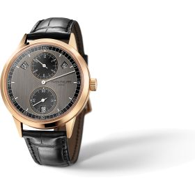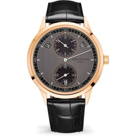 Patek Philippe hat das Modell mit Jahreskalender und Regulatoranzeige überarbeitet: Roségold-Gehäuse mit einem Zifferblatt in Graphitgrau und Schwarz. Das Dekor des Zifferblattes zeichnet sich durch eine vertikale Satinierung aus. Dieses Modell präsentiert sich als Automatik mit Saphirglas, polierter Oberfläche und einem schwarz-matten Aligator Lederarmband und Dornschließe. Kaliber 31-260 REG QA. Gangreserve 38-48 Stunden.Produktspezifikationen