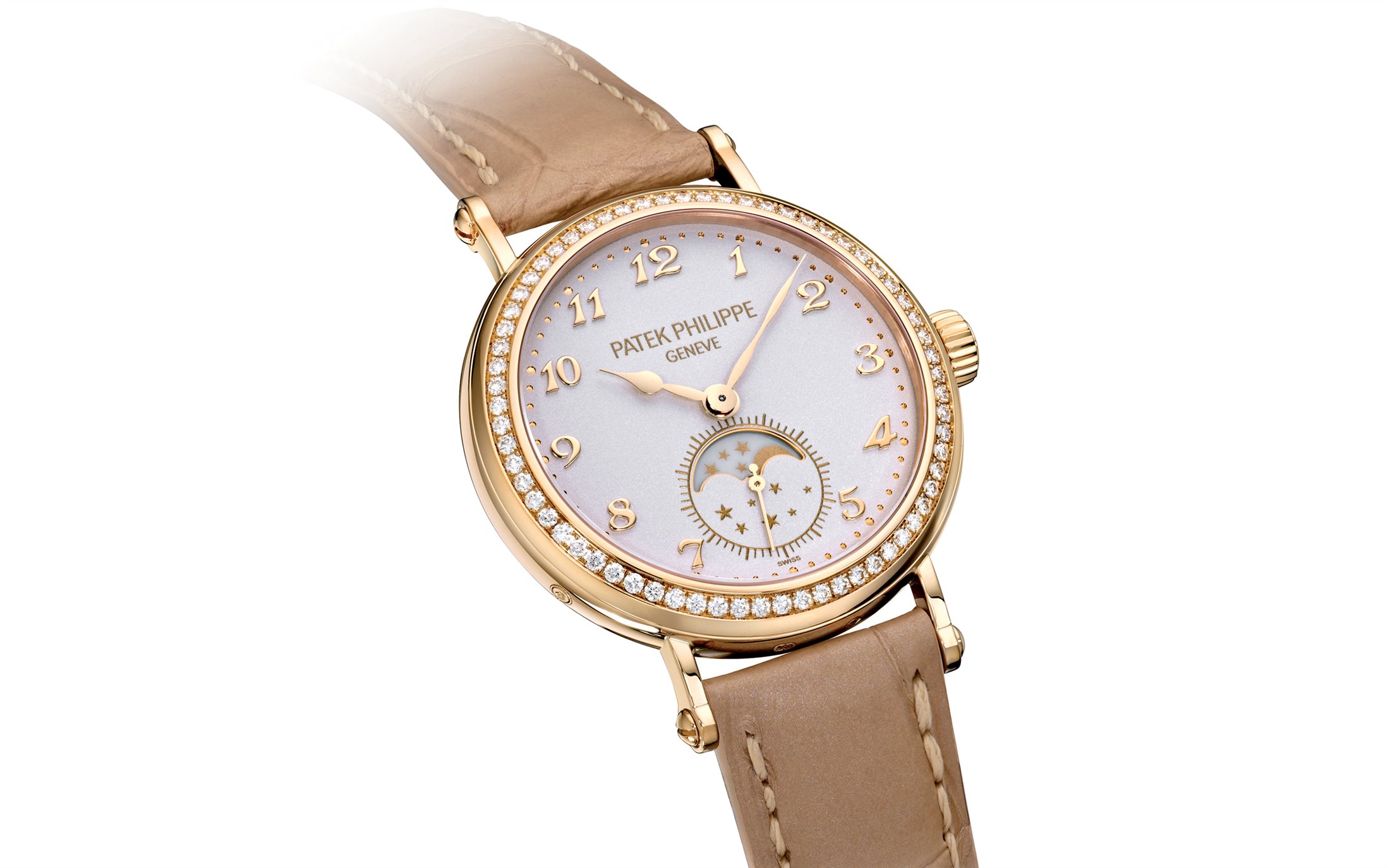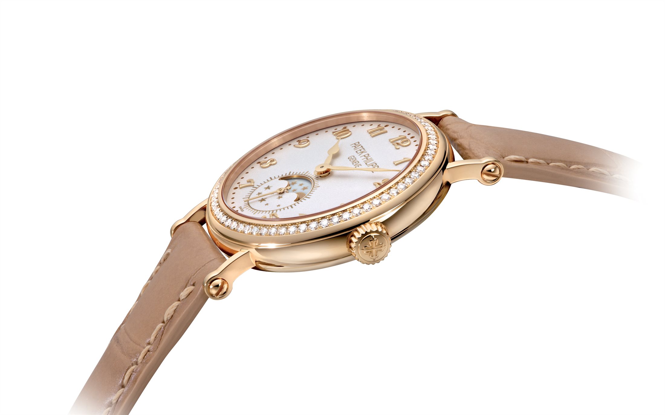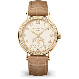 Patek Philippe 7121J Mondphasen. Das Schmuckstück aus der Komplizierte-Uhren Kollektion gilt als Hinweis auf die untrennbare Verbindung der Zeitmessung mit dem großen Himmelsballett. Die Mondphasenanzeige ist eine unverzichtbare Funktion der superkomplizierten Patek Philippe Uhren und der Ewigen Kalender der Marke. Gehäuse aus Gelbgold mit Saphirglasboden und 33 mm-Gehäusedurchmesser. Die Lünette ist zusätzlich besetzt mit 66 Diamanten (ca. 0,52 ct.).Bitte lassen Sie uns wissen, welchen Weg der Kontaktaufnahme Sie bevorzugen. Wir kommen dann baldmöglichst auf Sie zu.