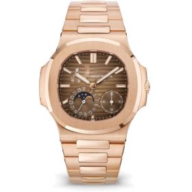 Die berühmte Nautilus mit Zeigerdatum, Mondphase und Gangreserveanzeige zeigt sich hier in einer neuen, sportlich-eleganten Farbharmonie: Ein Gehäuse und ein Armband aus Roségold werden mit einem braunen „Sonnenschliff“-Zifferblatt mit Schwarz-Verlauf verbunden. Die originelle Anordnung der drei Komplikationen auf dem Zifferblatt verleiht diesem Flaggschiff-Modell einen hohen Wiedererkennungswert und eine perfekte Ablesbarkeit. Das legendäre Nautilus-Design wird durch die abwechselnd polierten und satinierten Finissierungen auf dem Gehäuse, der achteckigen Lünette und dem Armband noch deutlicher herausgearbeitet.Produktspezifikationen