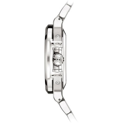- Stahl, Saphirglasboden, aufgesetzte Goldindexe mit Leuchtbeschichtung, Stabzeiger aus Weißgold