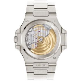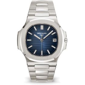 Die neue Nautilus ist die Reinkarnation eines Kultdesigns. Von den bisherigen Versionen unterscheidet sie sich durch ihr Gehäuse und ihr Armband aus Weißgold, die ein blaues Zifferblatt mit „Sonnenschliff“-Dekor und Schwarz-Verlauf am Rand umschließen. Das Gehäuse dieser Uhr ist etwas größer als üblich und als Hommage an die ursprünglichen Nautilus-Modelle aus dem Jahr 1976 ebenfalls aus zwei Teilen gefertigt. Charakteristisch sind auch einige subtile Weiterentwicklungen und patentierte technische Innovationen: die Sicherheitsfaltschließe, ein neues, längenverstellbares Einrastsystem für mehr Bequemlichkeit am Handgelenk sowie ein neues Kippsystem anstelle des bisherigen Systems mit geteilter Aufzugswelle.