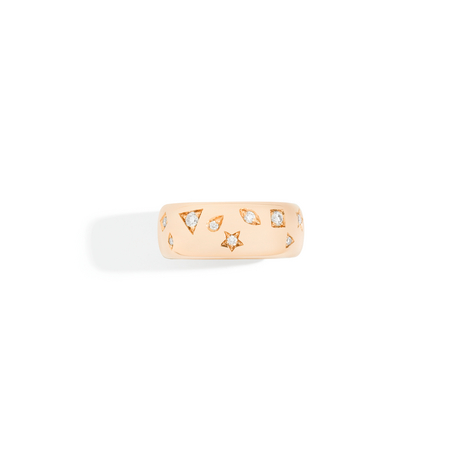 Großer Ring Iconica aus Roségold mit Diamanten. Kollektion ICONICA mit gewagten und sinnlichen Ringen aus Roségold mit fassonierten Diamanten. Die temperamentvollen, leichten und übereinander tragbaren Schmuckstücke, die zum Jubiläum der Maison kreiert wurden, können ganz im Stil von Pomellato miteinander kombiniert werden.Produktspezifikationen