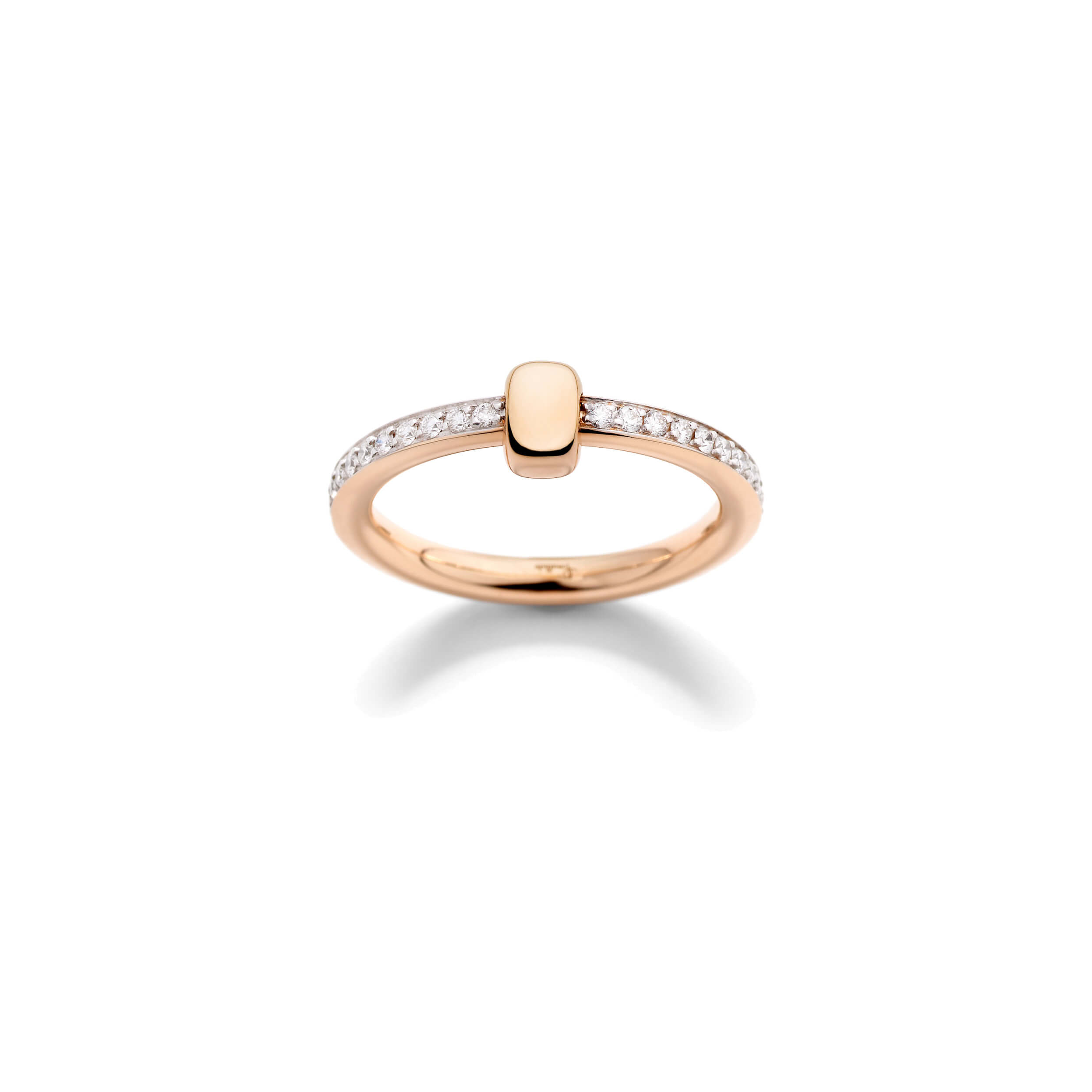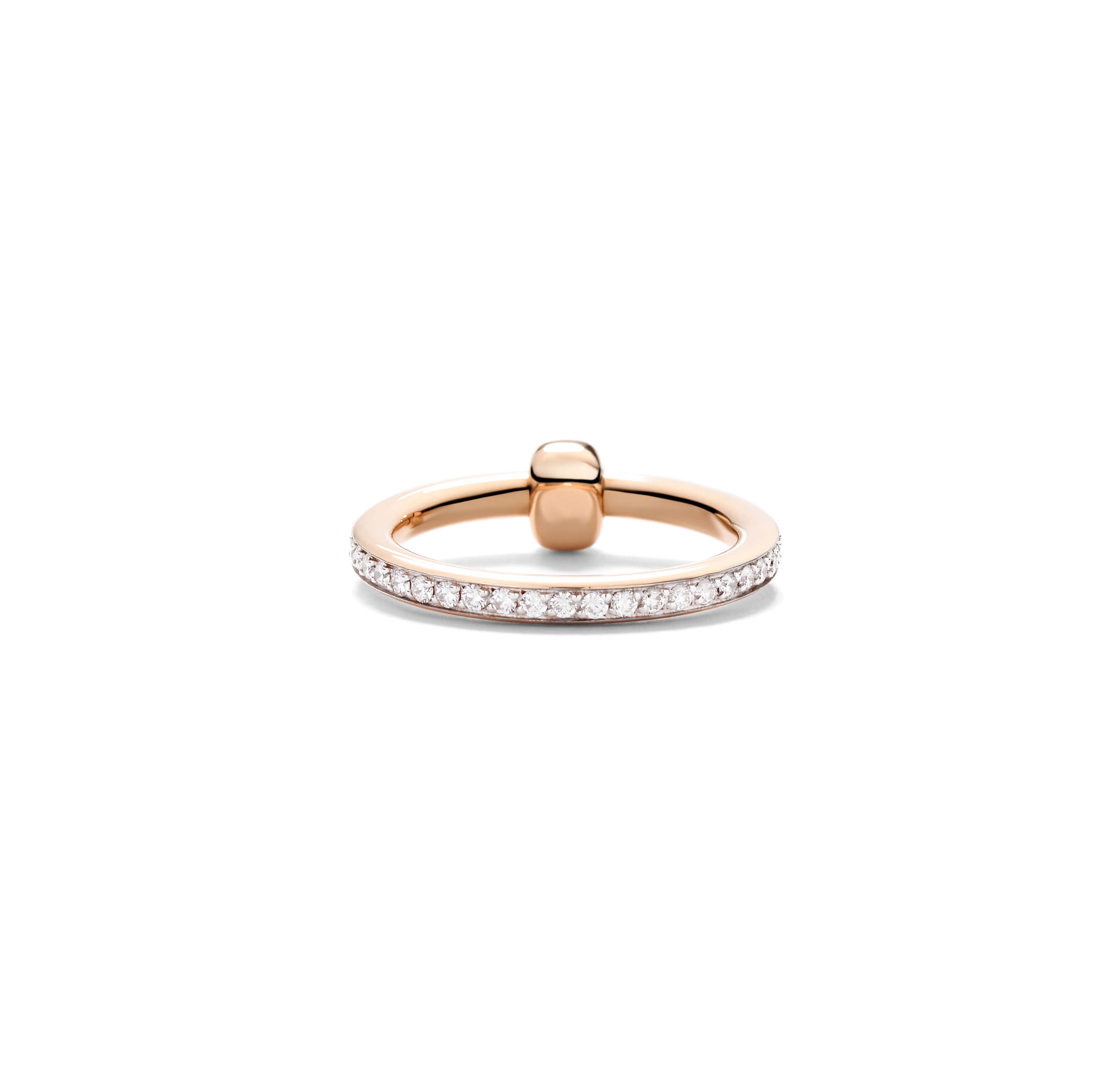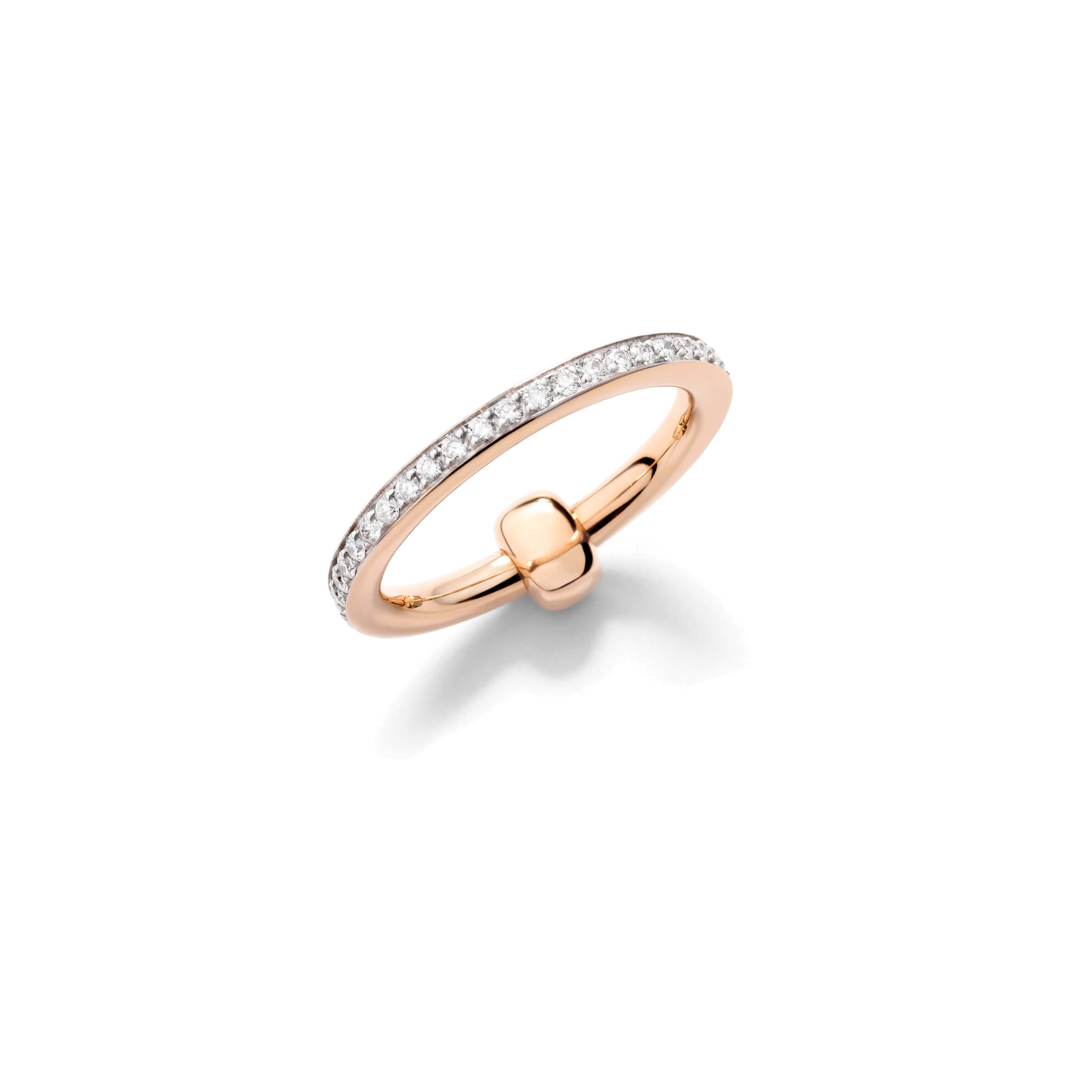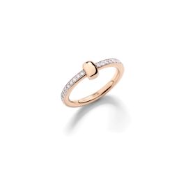 Die Kollektion Pomellato Together symbolisiert auf eindrucksvolle Weise die Verbindungen, die uns zusammenhalten, und feiert die Liebe in all ihren Facetten. Dieser Ring aus Roségold, der vollständig mit weißen Diamanten besetzt ist und durch ein schlichtes Goldglied ergänzt wird, kann als moderne Variante eines Hochzeits- oder Verlobungsrings getragen werden. Er eignet sich ebenso als Zeichen der Freundschaft oder Wertschätzung. Der Ring lässt sich leicht mit anderen Ringen der Pomellato Together Kollektion kombinieren und ist die perfekte Mailänder Hommage an die Liebe. Ring aus 750/- Roségold mit 41 weißen Diamanten (≈0,5 Ct) auf 750/- weißem, rhodiniertem Roségold.Produktspezifikationen