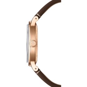Die Millesime mit Mondphasenanzeige verleiht dieser klassischen Komplikation eine neue, lebendige Dimension. Das grafisch strukturierte Zifferblatt ist optisch klar gegliedert und ermöglicht dem Träger eine dynamische, intuitive Ablesung der Mondphasen. Mit der Einführung dieser emblematischen Funktion setzt Raymond Weil ein Zeichen kreativer Eleganz. Das braune Sektorzifferblatt ruht unter einem Vintage-inspirierten Saphirglas in Glass-Box-Bauweise und ist auf höchstem Niveau veredelt. Stunden und Minuten werden durch silberfarbene Zeiger angezeigt, die mit Super-LumiNova® beschichtet sind, um auch bei Dunkelheit eine optimale Lesbarkeit zu garantieren. Das Sektorzifferblatt trennt Stunden, Minuten und Sekunden auf verschiedenen Spuren, was die Übersichtlichkeit zusätzlich verbessert. Bei näherer Betrachtung offenbaren sich die feinen Details: Die Stundenspur ist glatt, die Minutenspur azuriert, und die Zifferblattmitte ziert ein filigraner vertikaler Strich. Super-LumiNova®-Indizes und ein eigens für diese Kollektion gestaltetes Fenster bei 6 Uhr präsentieren die Mondphasen in klassischer und zugleich grafischer Form. Das originelle Monddesign, inspiriert von traditioneller Uhrmacherkunst mit modernem Akzent, zeigt ein lächelndes Gesicht mit Planeten und Sternen und garantiert eine klare, positive Ablesung. Die Lünette besticht durch vertikale Satinierungen, die im reizvollen Kontrast zu den hochglanzpolierten Abschrägungen stehen. Dieses Zusammenspiel unterschiedlicher Oberflächen verleiht der Uhr ein besonders raffiniertes Finish. Durch den Saphirglas-Gehäuseboden wird das Automatikwerk sichtbar, inklusive der für Raymond Weil typischen W-förmigen Schwungmasse. Das braune Kalbslederarmband ist mit einer charakteristischen W-Naht versehen und rundet das Design harmonisch ab. Wie der Name der Kollektion verrät, ist diese Uhr eine prachtvolle Vintage-Interpretation der Marke Raymond Weil.Produktspezifikationen