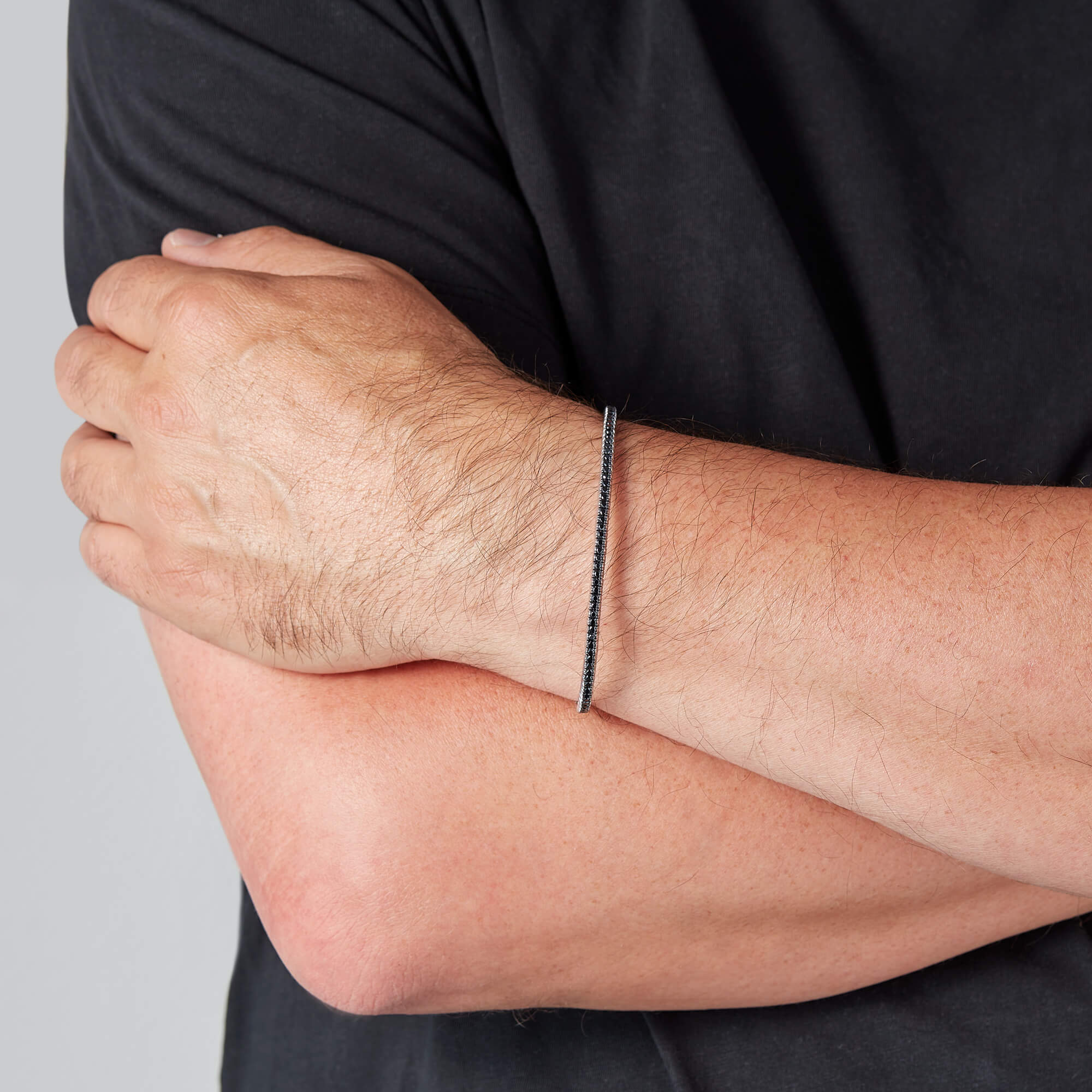 Stretch-Armband aus 750/- Weißgold, teilweise schwarz rhodiniert mit schwarzen Diamanten (3,04 ct.)Länge 20 cm, Armband ist flexibel