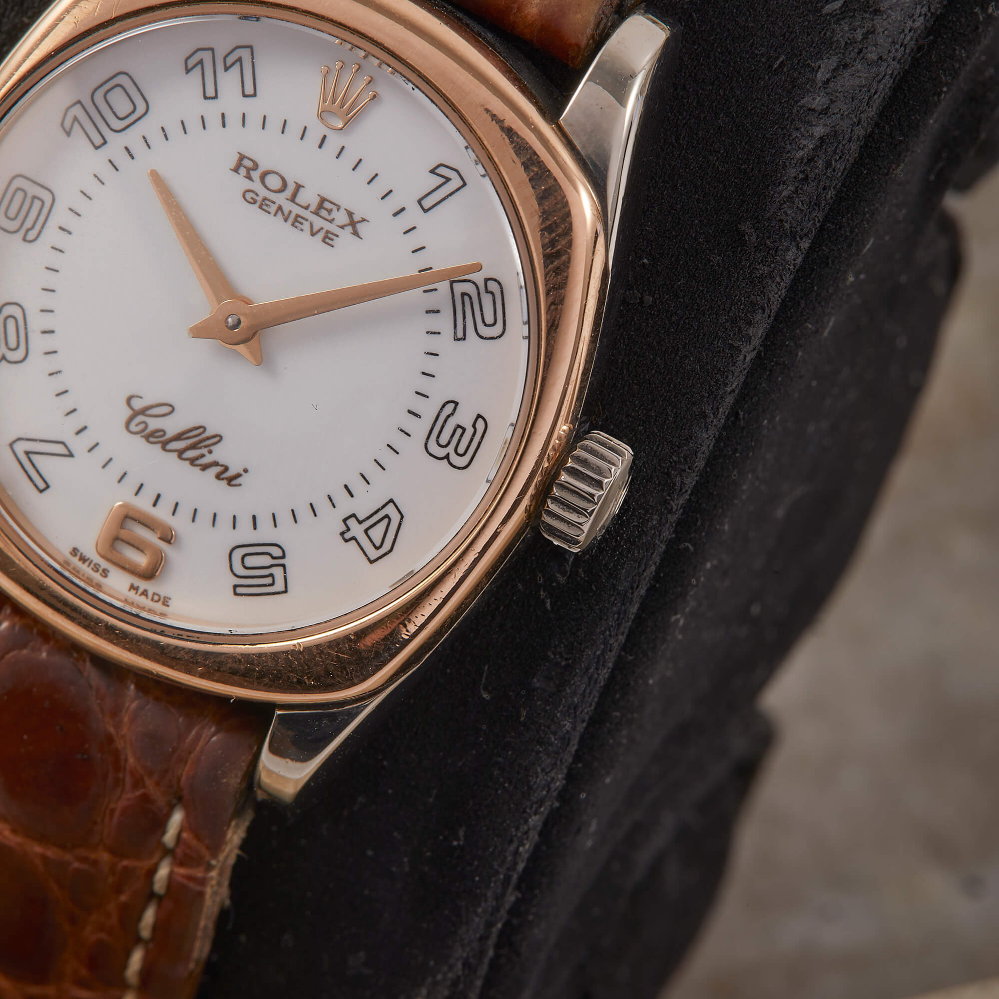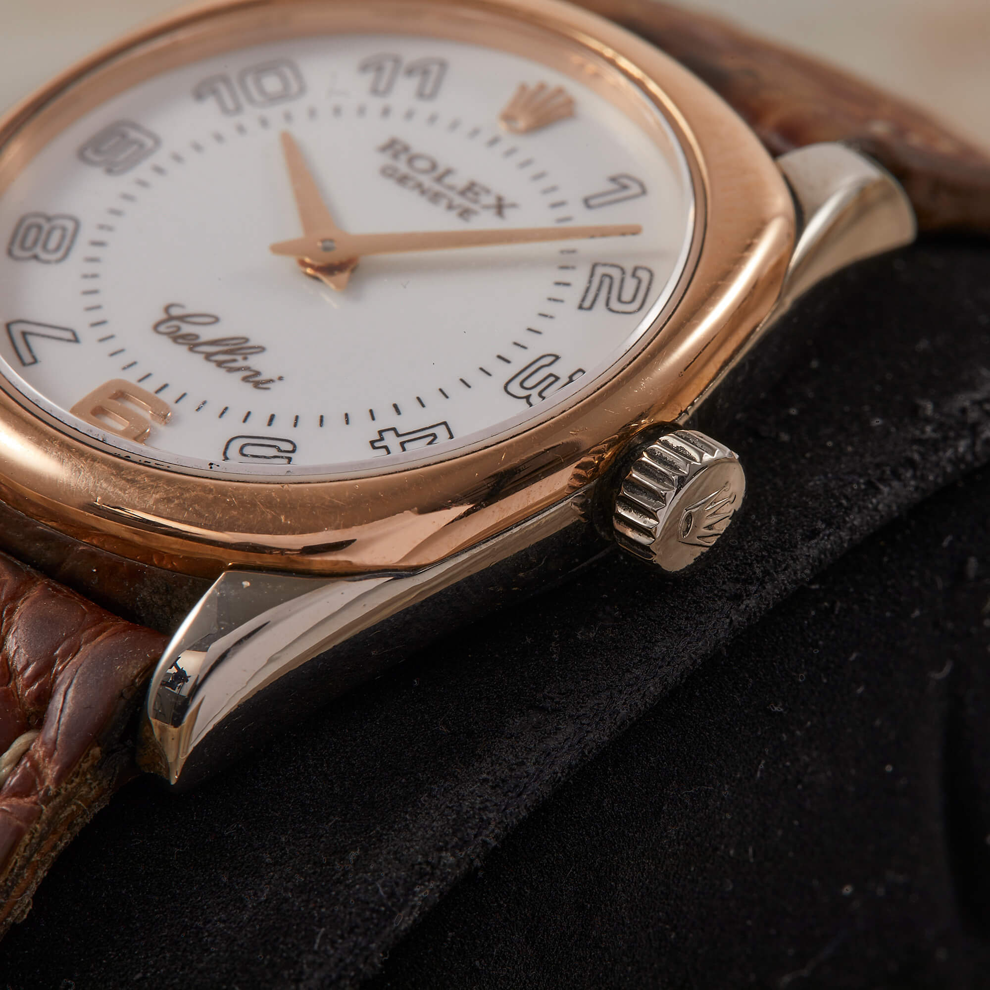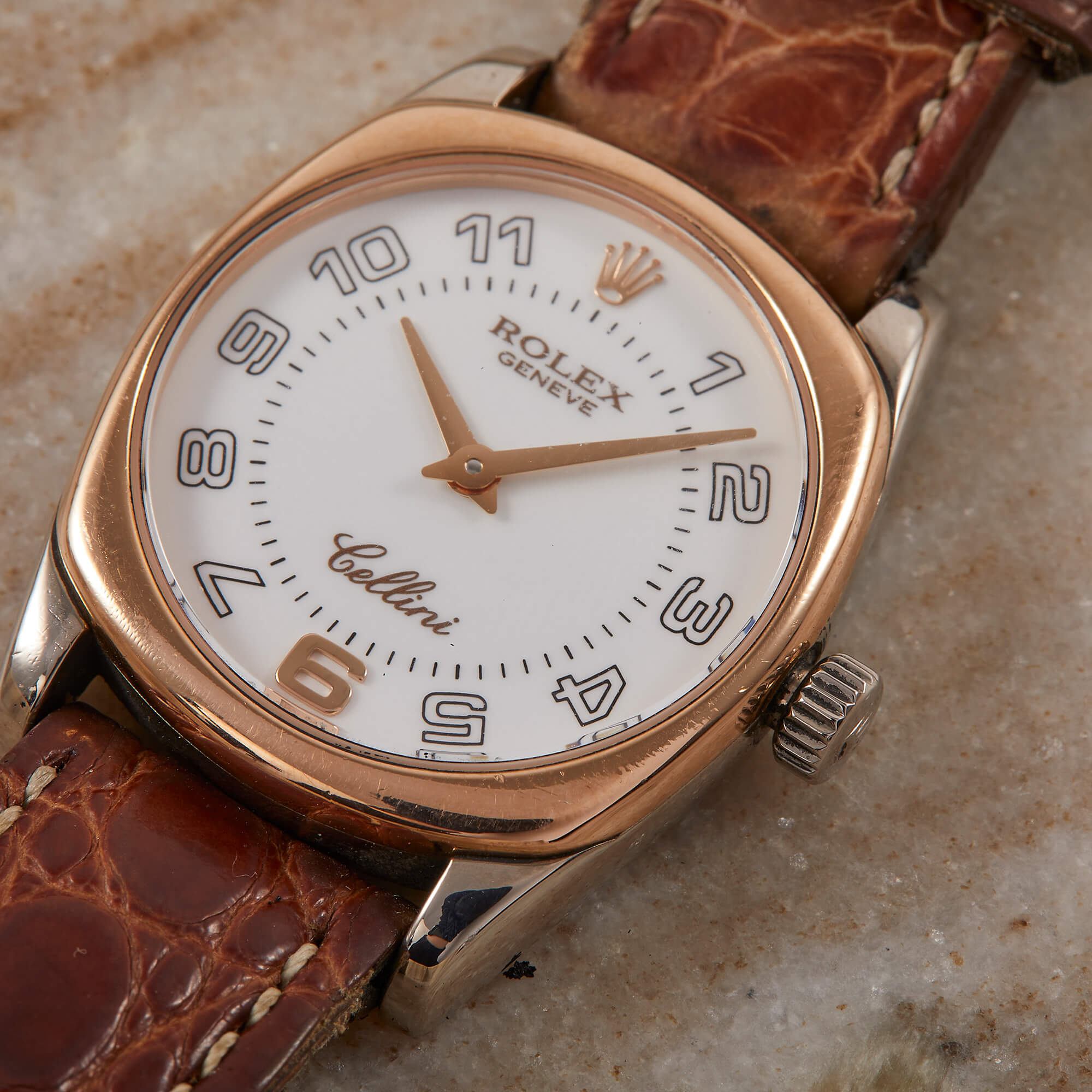 Elegante Rolex Cellini Danaos in der Referenz 6229 mit Gehäuse in Stahl und Roségold. Die Uhr befindet sich in gutem Zustand und überzeugt mit einem klassischen weißen Zifferblatt. Inklusive originaler Garantiekarte – ein stilvoller Dresswatch-Klassiker aus der Cellini-Linie mit besonderem Charme.