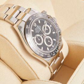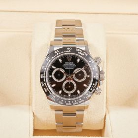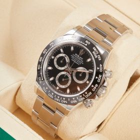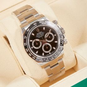 Rolex Daytona, Referenz 116500LN, mit schwarzem Zifferblatt im Fullset. Der ikonische Chronograph überzeugt durch sportlich-elegantes Design, moderne Technik und gehört zu den begehrtesten Modellen der Rolex-Kollektion. Die Uhr befindet sich im Fullset.- Durchmesser
