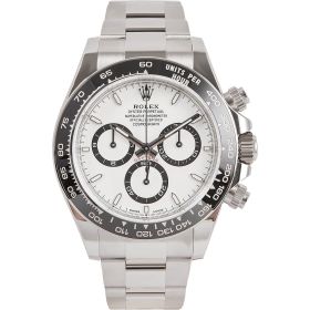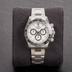 Rolex Daytona, neue Referenz 126500LN, mit weißem Zifferblatt im Fullset. Der ikonische Chronograph überzeugt durch sportlich-elegantes Design, moderne Technik und gehört zu den begehrtesten Modellen der Rolex-Kollektion.- Durchmesser