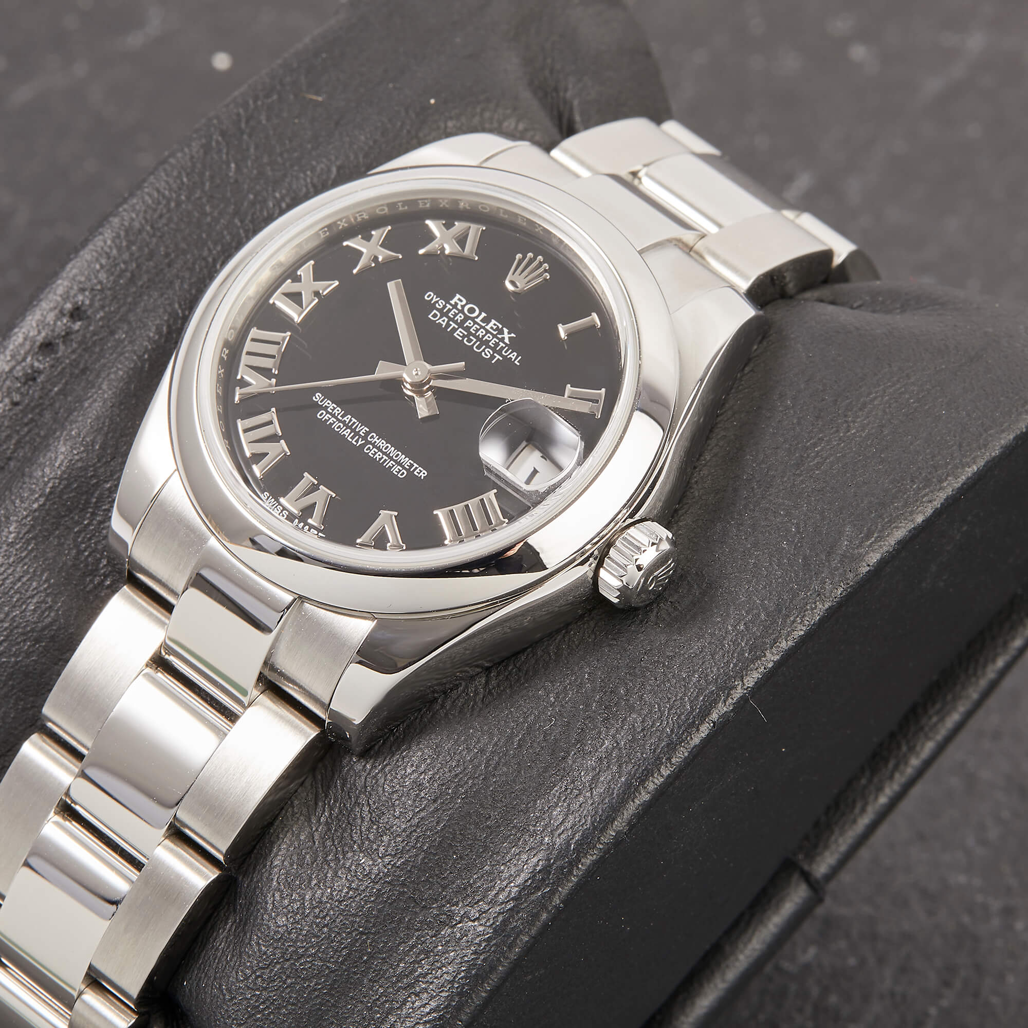 Die Rolex Datejust 31 Ref. 178240 mit schwarzem Zifferblatt ist ein elegantes und vielseitiges Modell, das klassische Rolex-Designs mit moderner Ästhetik kombiniert. Das Zifferblatt sorgt für eine edle Ausstrahlung und macht die Zeit auf einen Blick gut ablesbar. Das Edelstahlgehäuse und das Oysterband bieten sowohl Komfort als auch Robustheit.- Durchmesser