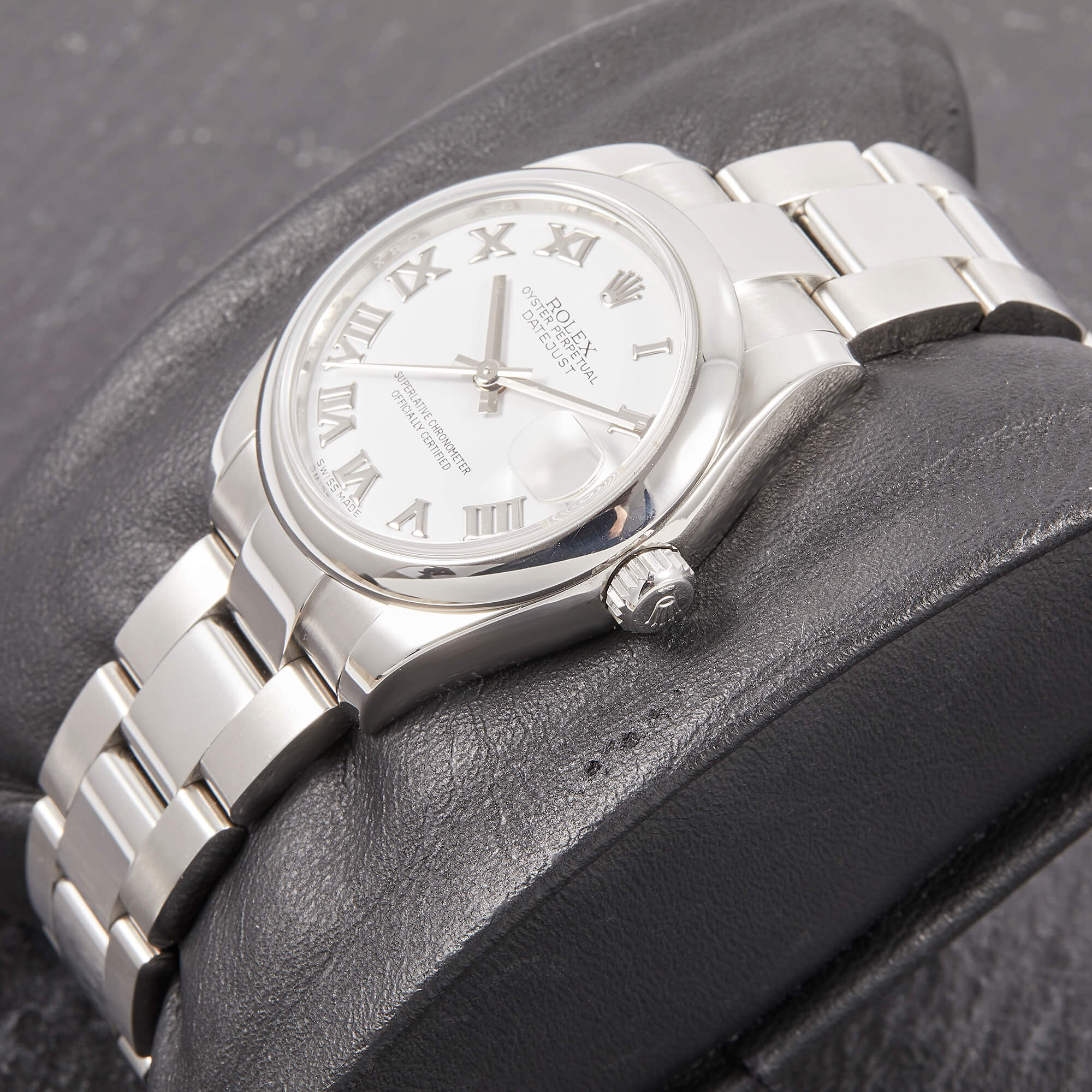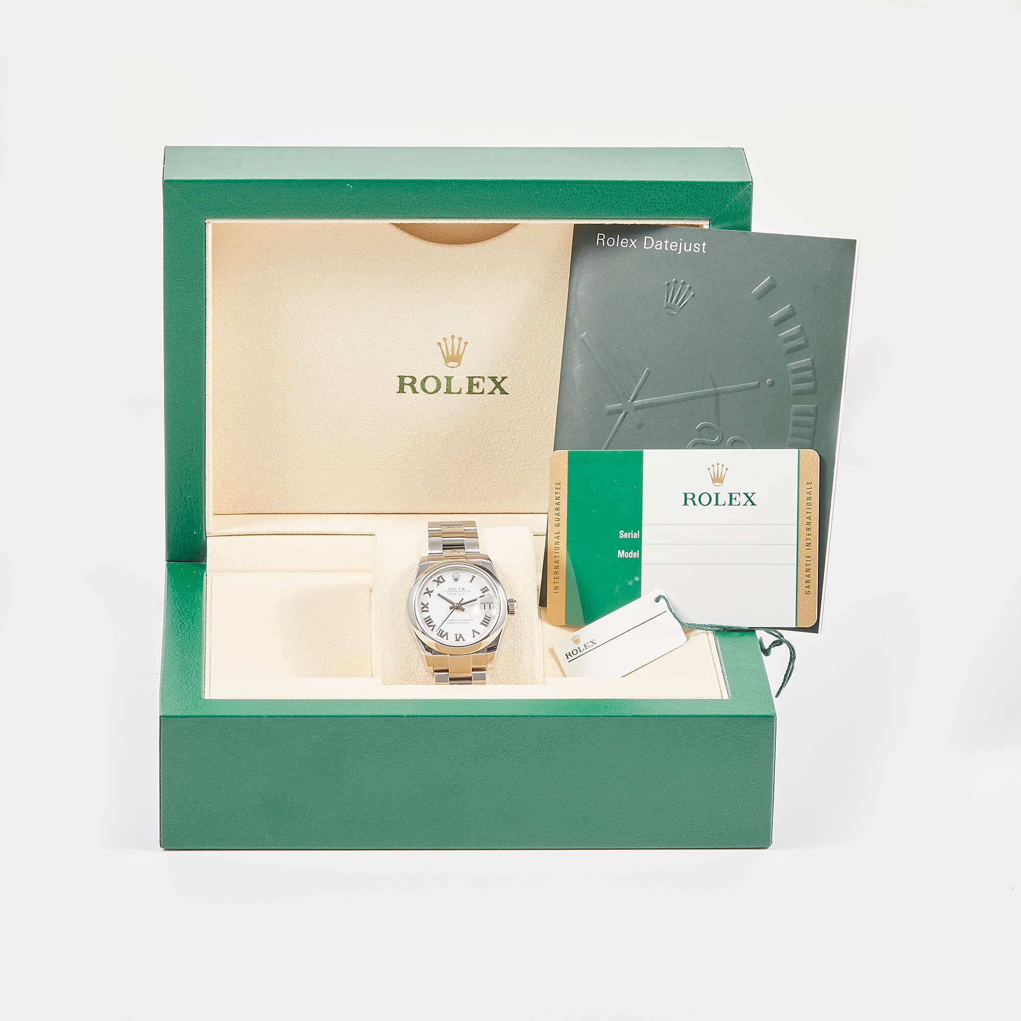 Die Rolex Datejust 31 Ref. 178240 mit weißem Zifferblatt ist ein elegantes und vielseitiges Modell, das klassische Rolex-Designs mit moderner Ästhetik kombiniert. Das Zifferblatt sorgt für eine edle Ausstrahlung und macht die Zeit auf einen Blick gut ablesbar. Das Edelstahlgehäuse und das Oysterband bieten sowohl Komfort als auch Robustheit.- Durchmesser