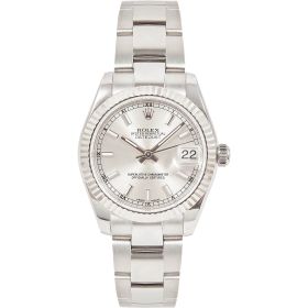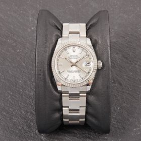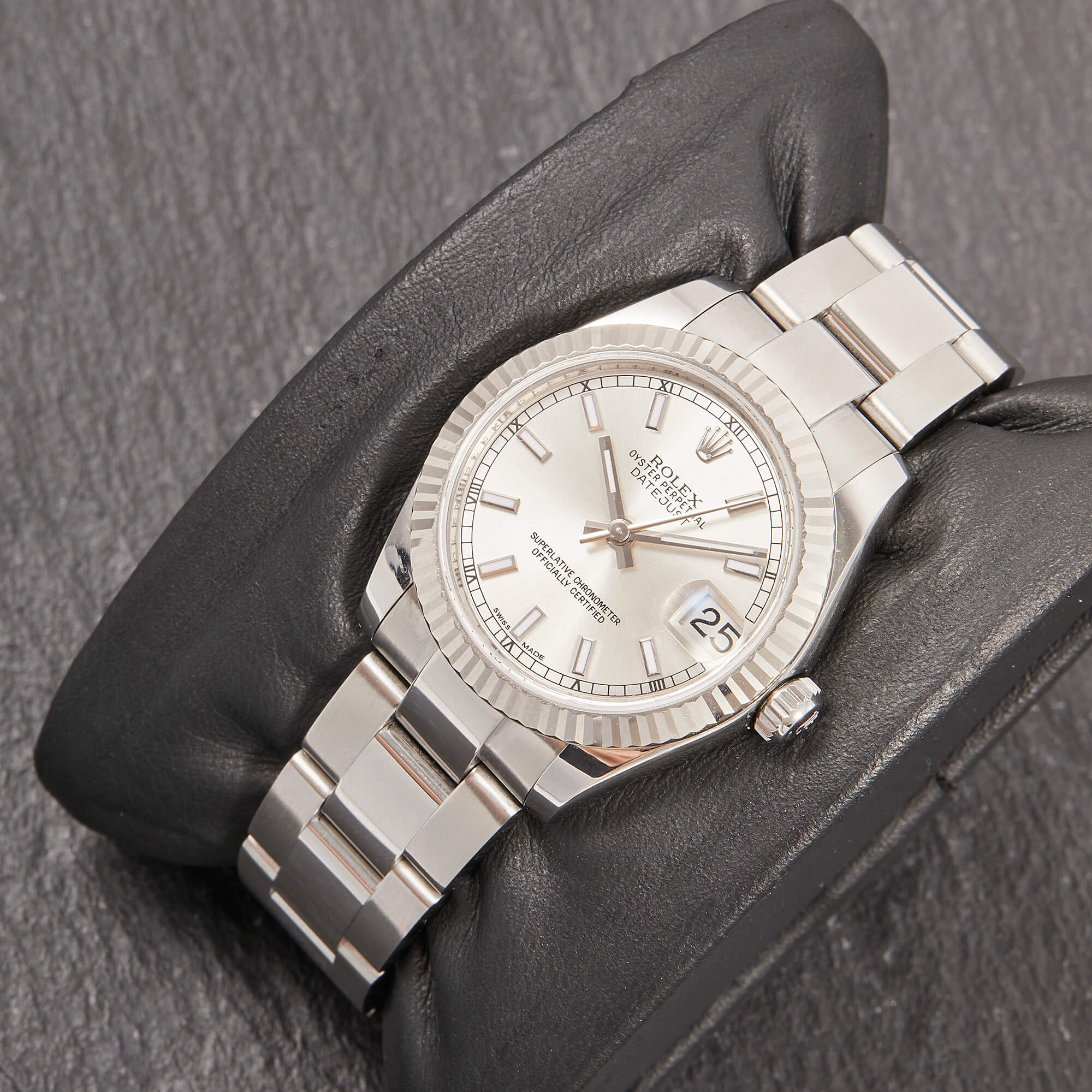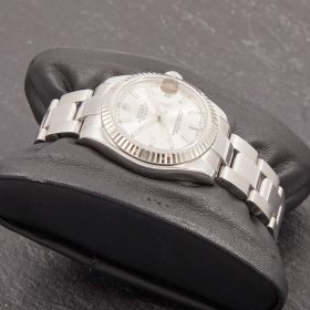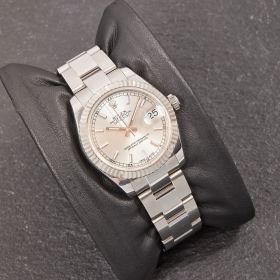 Rolex Lady Datejust mit 31mm Gehäusedurchmesser, komplett in Edelstahl gefertigt mit silbernem Zifferblatt und dem bequemen Oysterband.- Durchmesser