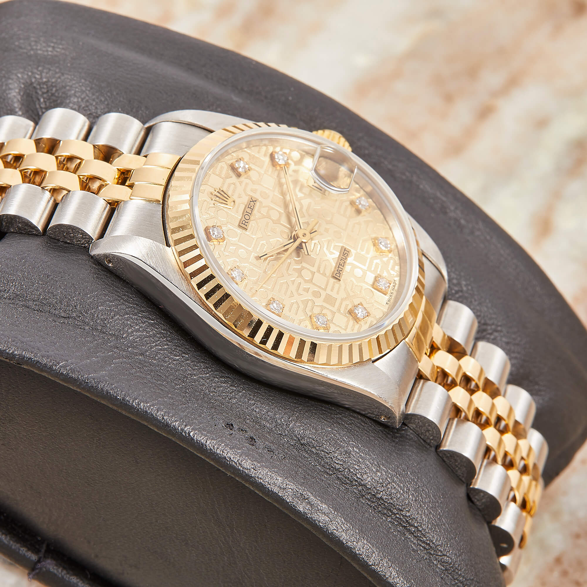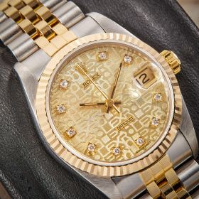 Zeitlose Rolex Lady-Datejust 31 Referenz 68273 in Stahl-Gelbgold mit champagnerfarbenem Computer-Zifferblatt inkl. funkelnden Diamantindizes, welche sich in einem schönen Zustand befindet. Ein eleganter Klassiker mit Charakter.- Durchmesser