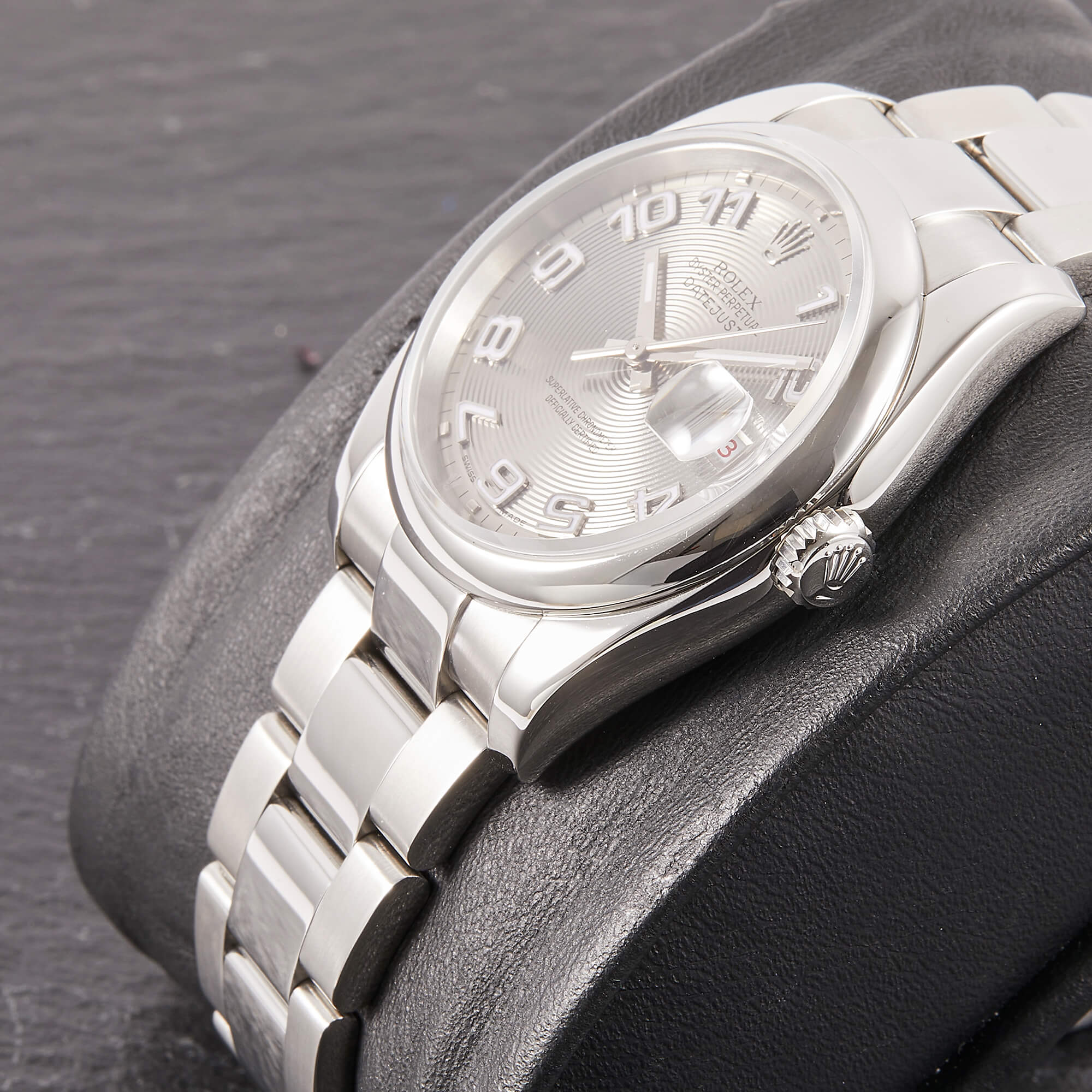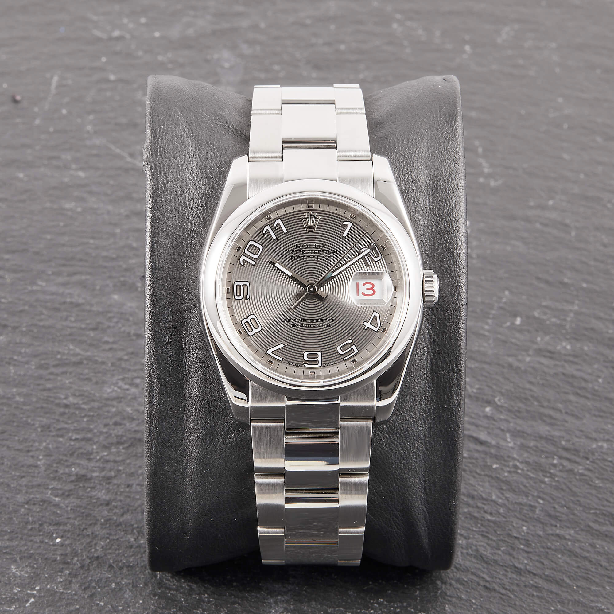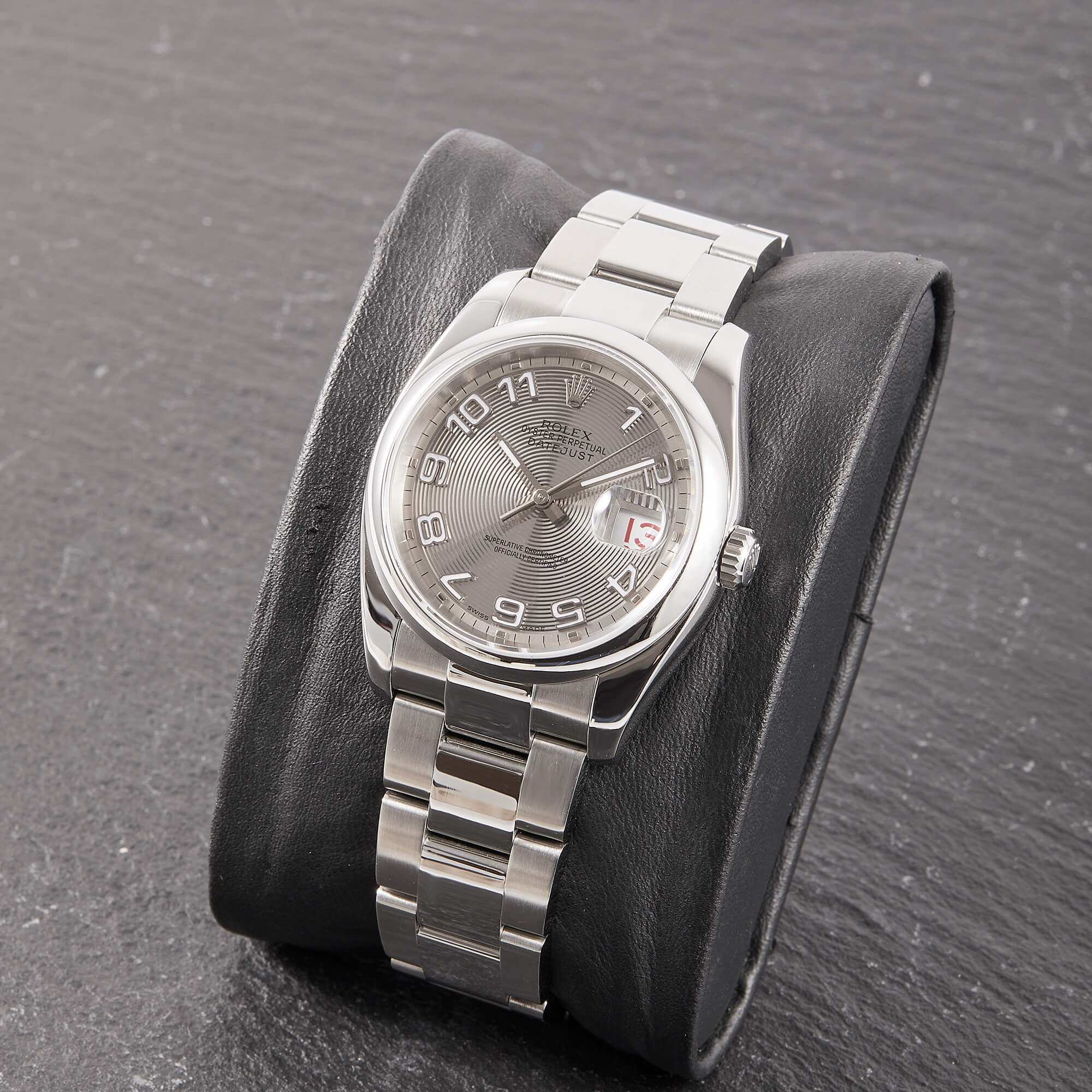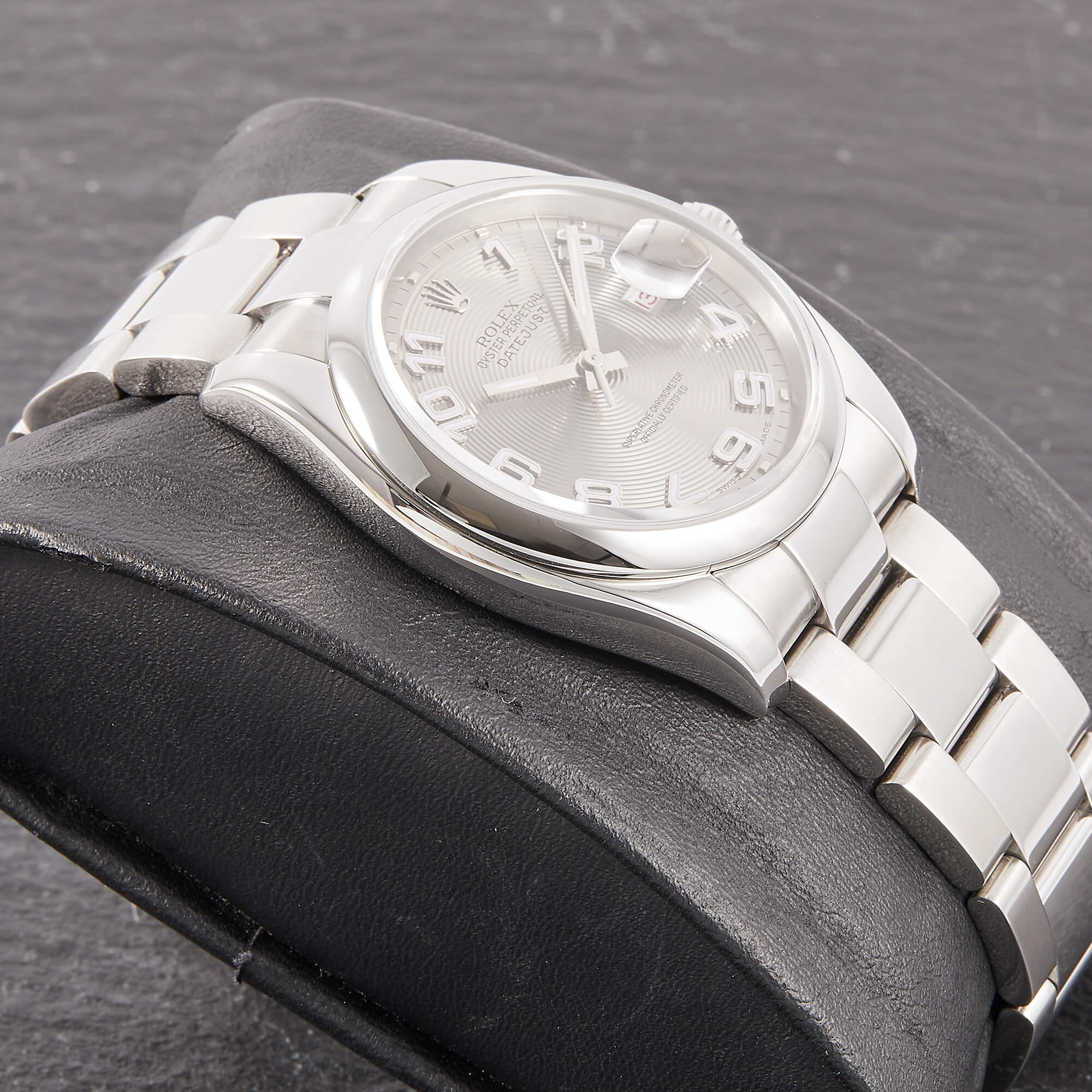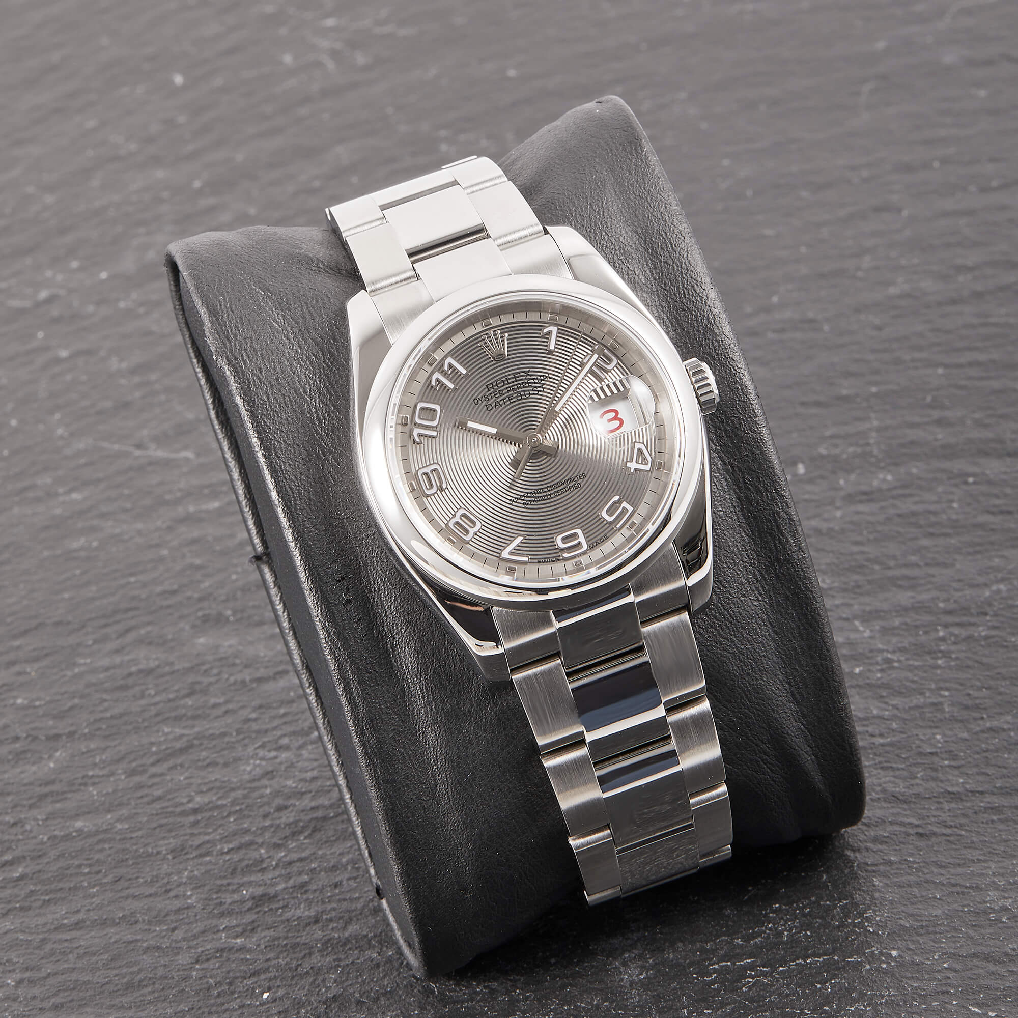 Die Rolex Datejust 36 Referenz 116200 mit silbernem concentric Dial ist ein wahrer Klassiker der Marke, der durch sein schlichtes und elegantes Design besticht. Das markante Zifferblatt mit seinen konzentrischen Ringen sorgt für einen einzigartigen, optischen Effekt und hebt die Zeitangabe auf stilvolle Weise hervor. Die Uhr ist im Fullset erhältlich, was bedeutet, dass sie mit sämtlichem Originalzubehör wie Box, Papieren und Garantie geliefert wird.- Durchmesser
