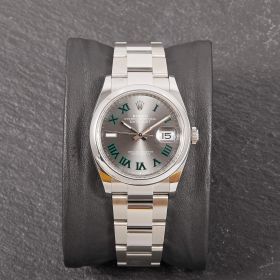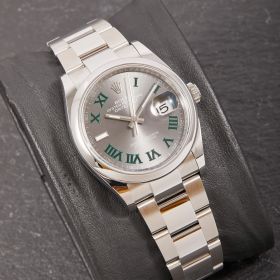 Die Rolex Datejust 36 Referenz 126200 ist ein zeitlos elegantes Modell, das sich durch seine klassische Größe von 36 mm auszeichnet. Diese Variante verfügt über eine glatte, polierte Lünette, die der Uhr einen dezenten, aber raffinierten Look verleiht. Das ikonische Oyster-Armband sorgt für hohen Tragekomfort und einen luxuriösen Stil. Das Gehäuse besteht aus robustem Edelstahl Oystersteel, das nicht nur langlebig, sondern auch kratzfest ist.- Durchmesser