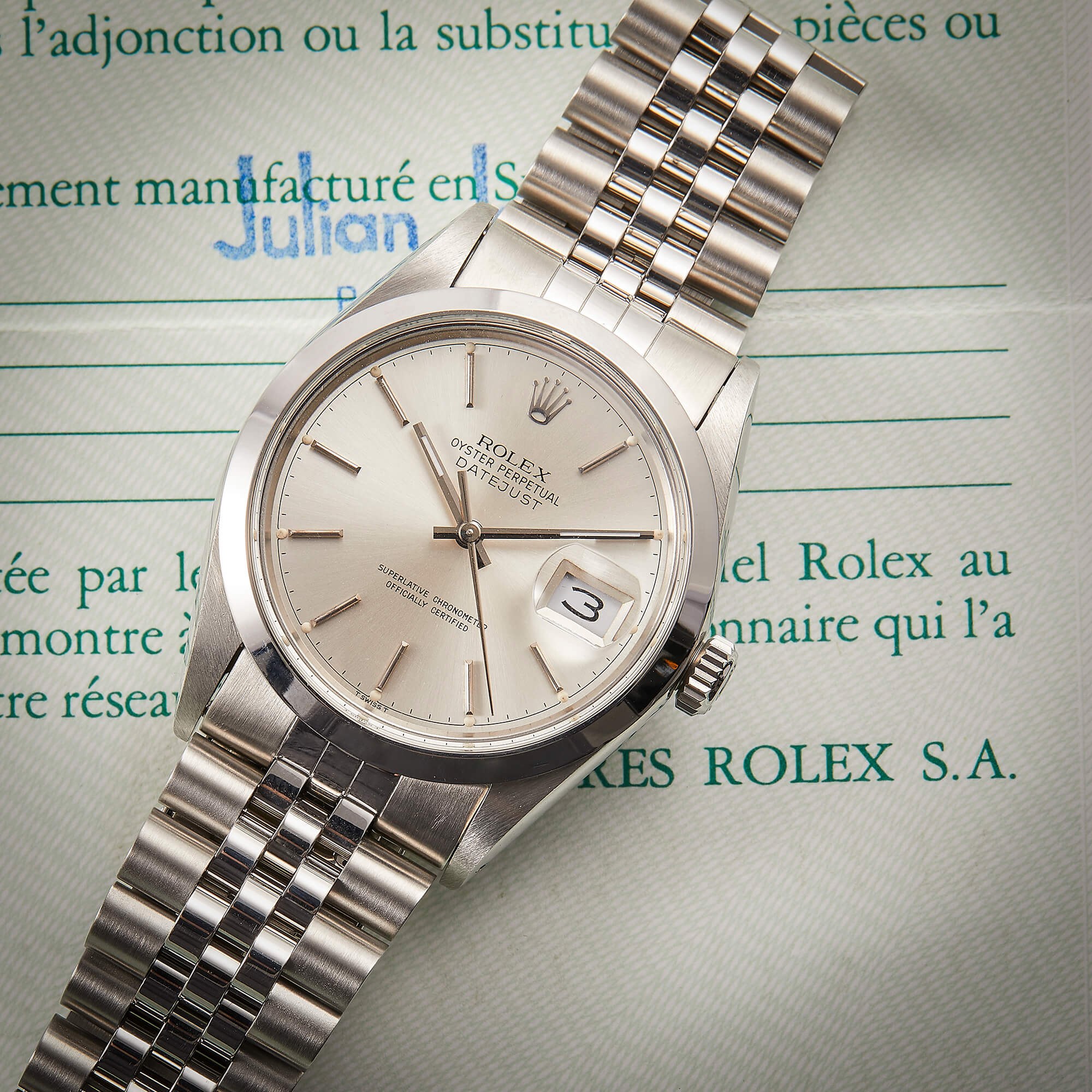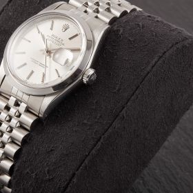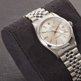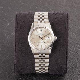 Diese elegante Datejust 16000 überzeugt mit einem klassichen silbernen Zifferblatt und Jubilee-Band.