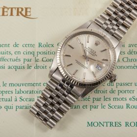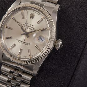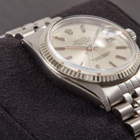 Zeitlose Rolex Datejust Referenz 16014 in Stahl mit silberfarbenem Zifferblatt, welche sich in einem schönen Zustand befindet. Ein eleganter Klassiker mit Charakter. Inkl. originalen Garantieunterlagen.- Durchmesser
