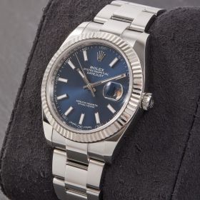 Die Rolex Datejust 41, Referenz 126334, vereint klassische Eleganz mit moderner Raffinesse. Das Gehäuse aus Edelstahl, kombiniert mit dem stilvollen Oyster-Armband und der edlen Weißgoldlünette, sorgt für einen luxuriösen Auftritt. Das blaue Zifferblatt verleiht der Uhr eine subtile Tiefe und zeitlose Ästhetik. Im Fullset, inklusive Box und Papieren, bietet diese Uhr nicht nur höchste Präzision, sondern auch eine herausragende Qualität und einen unvergänglichen Charme.- Durchmesser