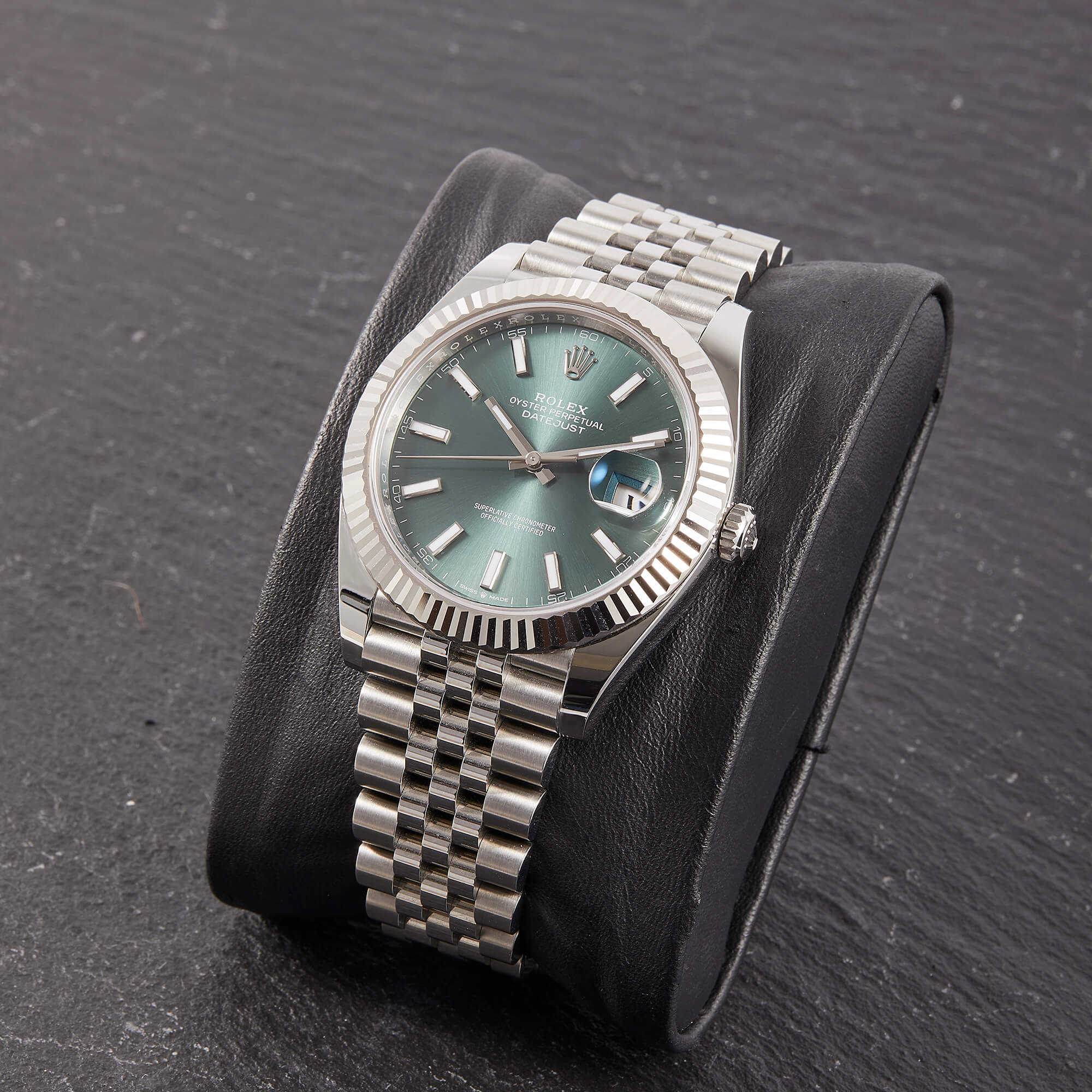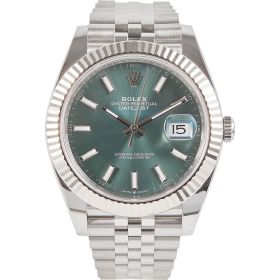 Die Rolex Datejust 41 Ref. 126334 ist eine elegante und zeitlose Armbanduhr, die sich durch ihre präzise Verarbeitung und ihr klassisches Design auszeichnet. Mit einem Durchmesser von 41 mm bietet sie eine ideale Balance zwischen Präsenz und Tragekomfort. Das mintgrüne Zifferblatt, das mit silbernen Indexen und der ikonischen Datumskomplikation bei 3 Uhr versehen ist, sorgt für eine klare und gut ablesbare Darstellung der Zeit. Das Jubileeband aus Edelstahl unterstreicht die Robustheit der Uhr und garantiert gleichzeitig hohen Tragekomfort. Das kaliber 3235 sorgt für außergewöhnliche Präzision und eine Gangreserve von bis zu 70 Stunden.- Durchmesser