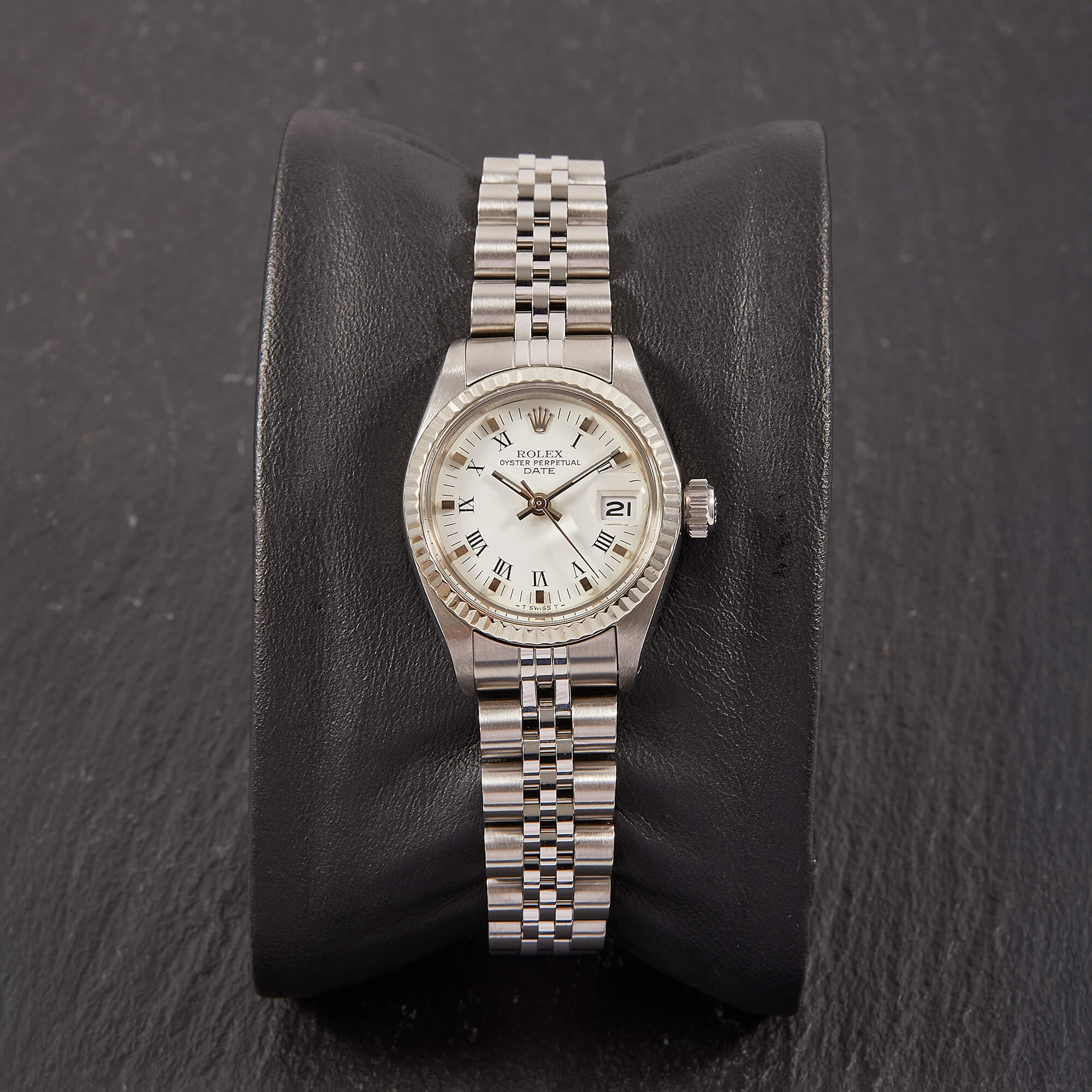 Die Rolex Datejust 6917-4 mit Box und Papieren ist eine elegante und luxuriöse Uhr, die mit ihrem weißem Zifferblatt und den schönen römischen Indizes besticht. Das klassische Design der Datejust kombiniert mit dem neuen Jubileeband macht sie zu einem zeitlosen Klassiker. Die Uhr hat kürzlich einen frischen Service erhalten, was ihren hervorragenden Zustand weiter optimiert. Sie wird mit originaler Garantie ausgeliefert.