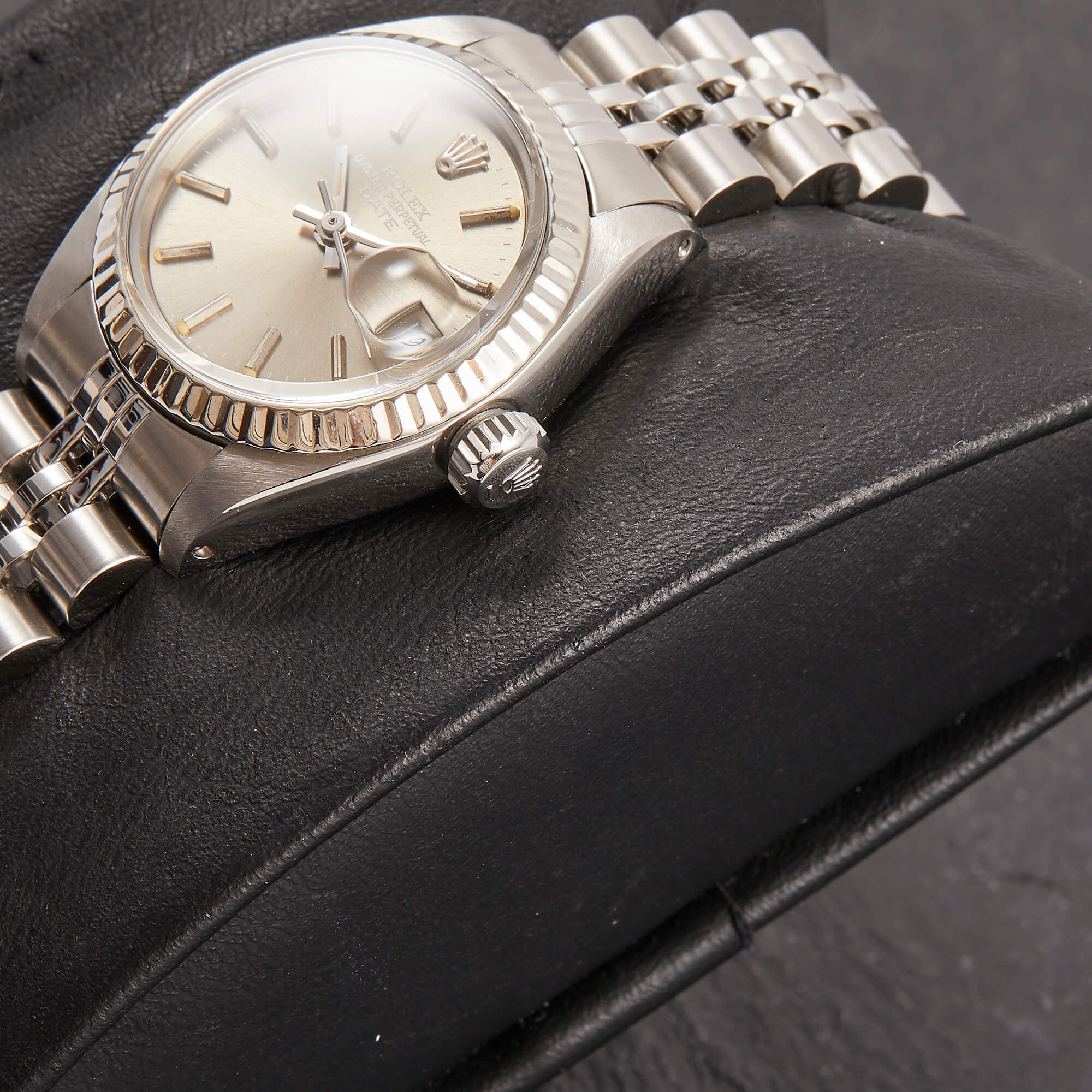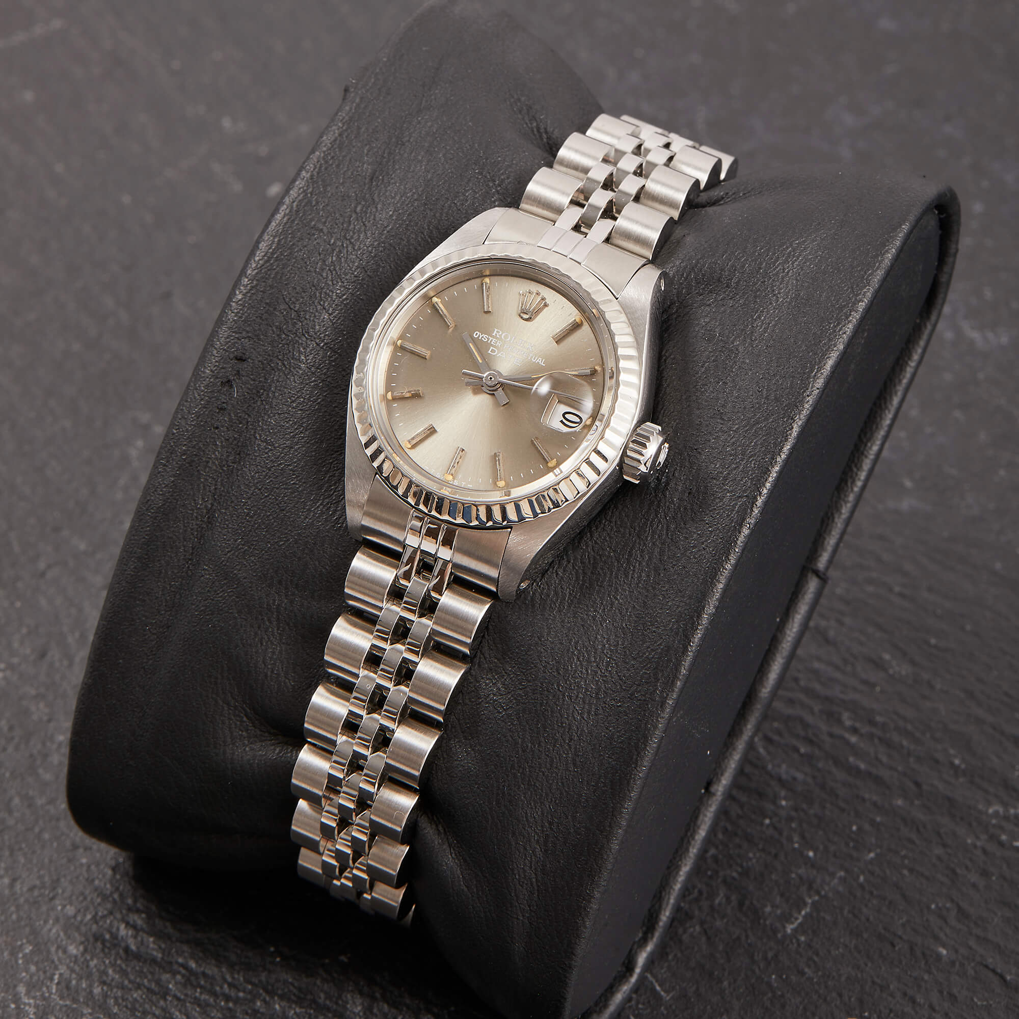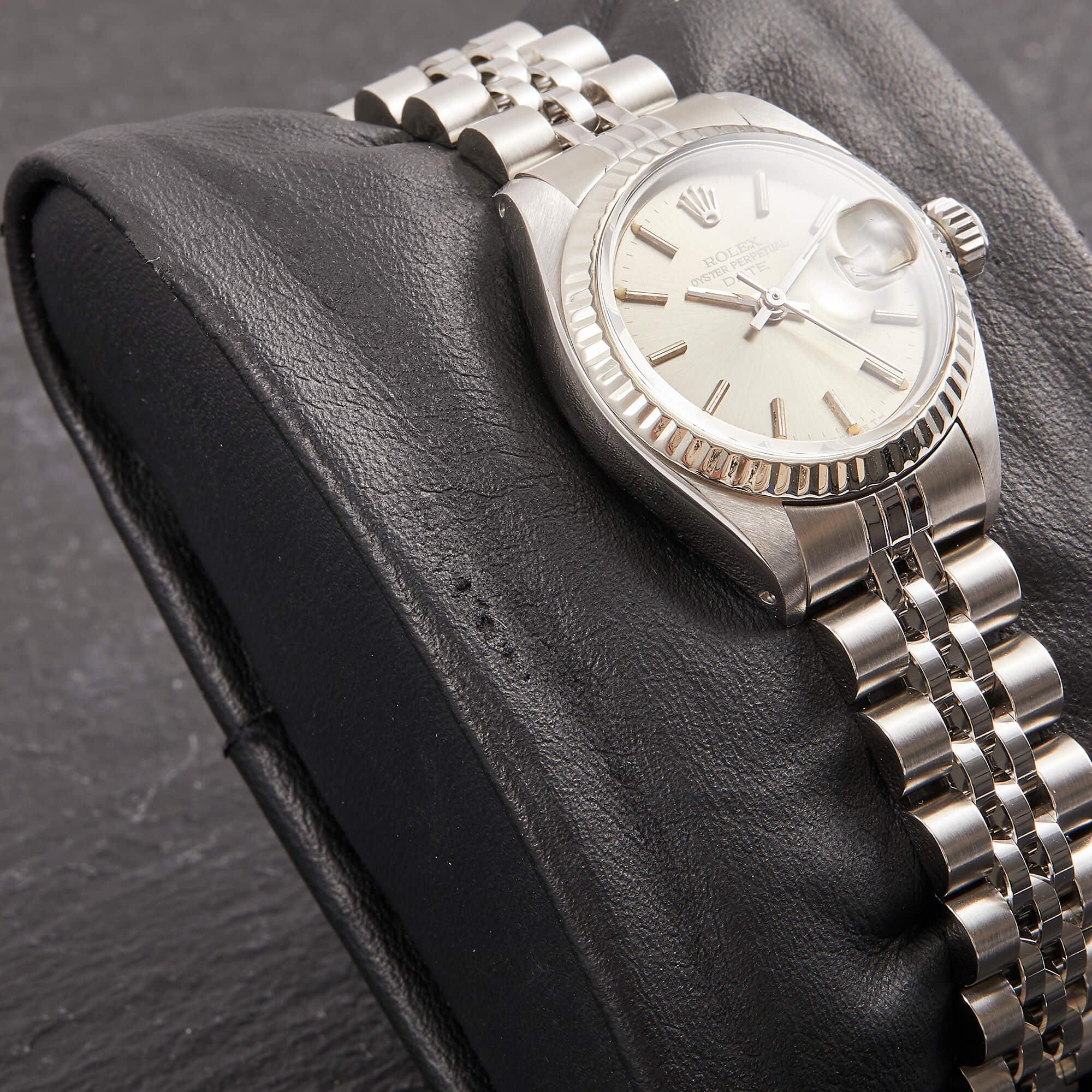 Die Rolex Lady Datejust 26, Referenz 69174, besticht durch ihr Edelstahlgehäuse mit der eleganten, geriffelten Weißgoldlünette. Das graue Zifferblatt ist mit Stabindizes ausgestattet und verleiht der Uhr eine zeitlose, edle Ausstrahlung. Originale Garantiepapiere liegen bei und runden dieses hochwertige Angebot ab – ein perfekter Begleiter für stilbewusste Damen.- Durchmesser