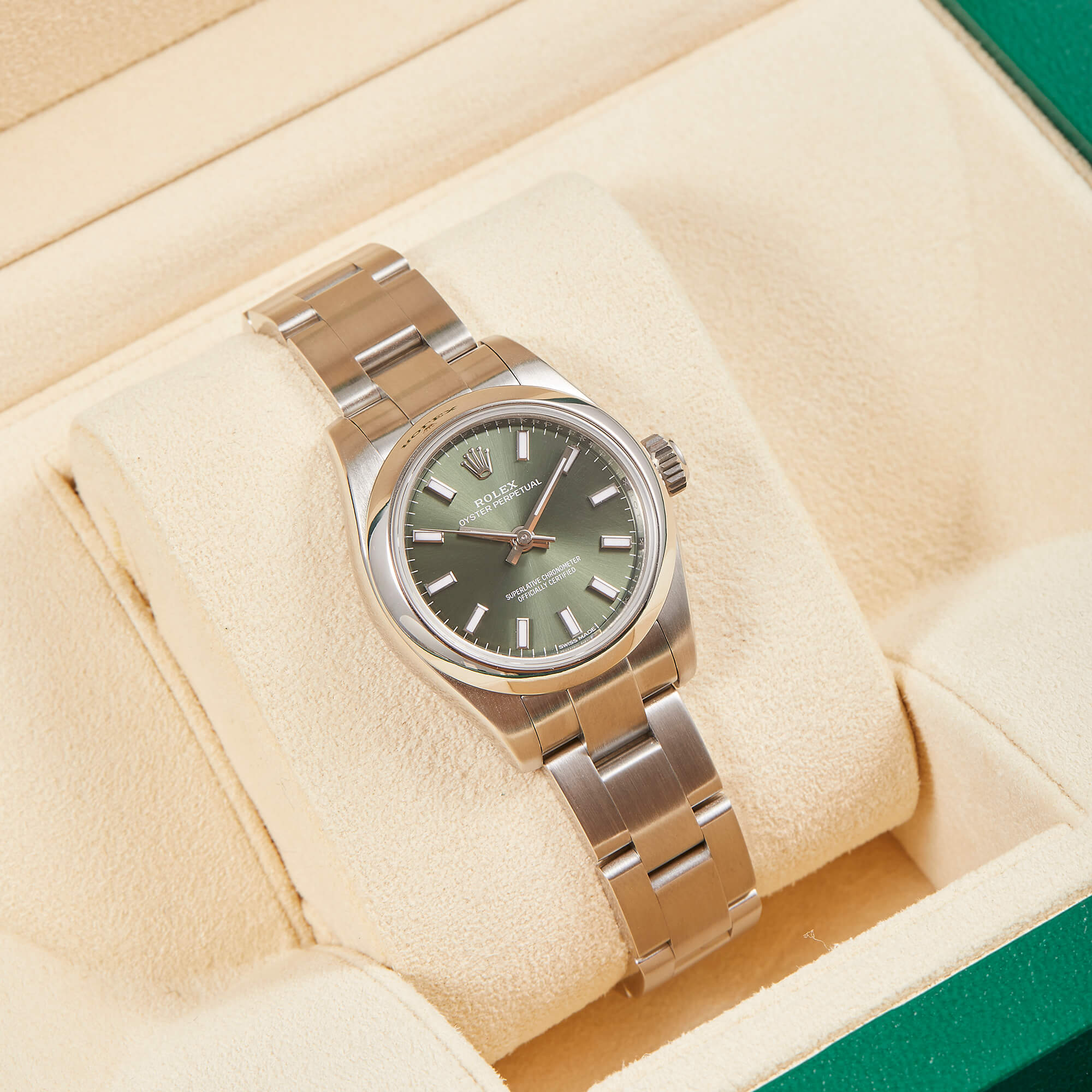 Die Rolex Oyster Perpetual 26 Referenz 176200 präsentiert sich als elegante Edelstahluhr in klassischer 26-mm-Größe. Sie wird im vollständigen Fullset geliefert und überzeugt mit zeitlosem Design, hoher Alltagstauglichkeit und der bewährten Rolex-Automatik – ein stilvoller Begleiter für jeden Tag.- Durchmesser