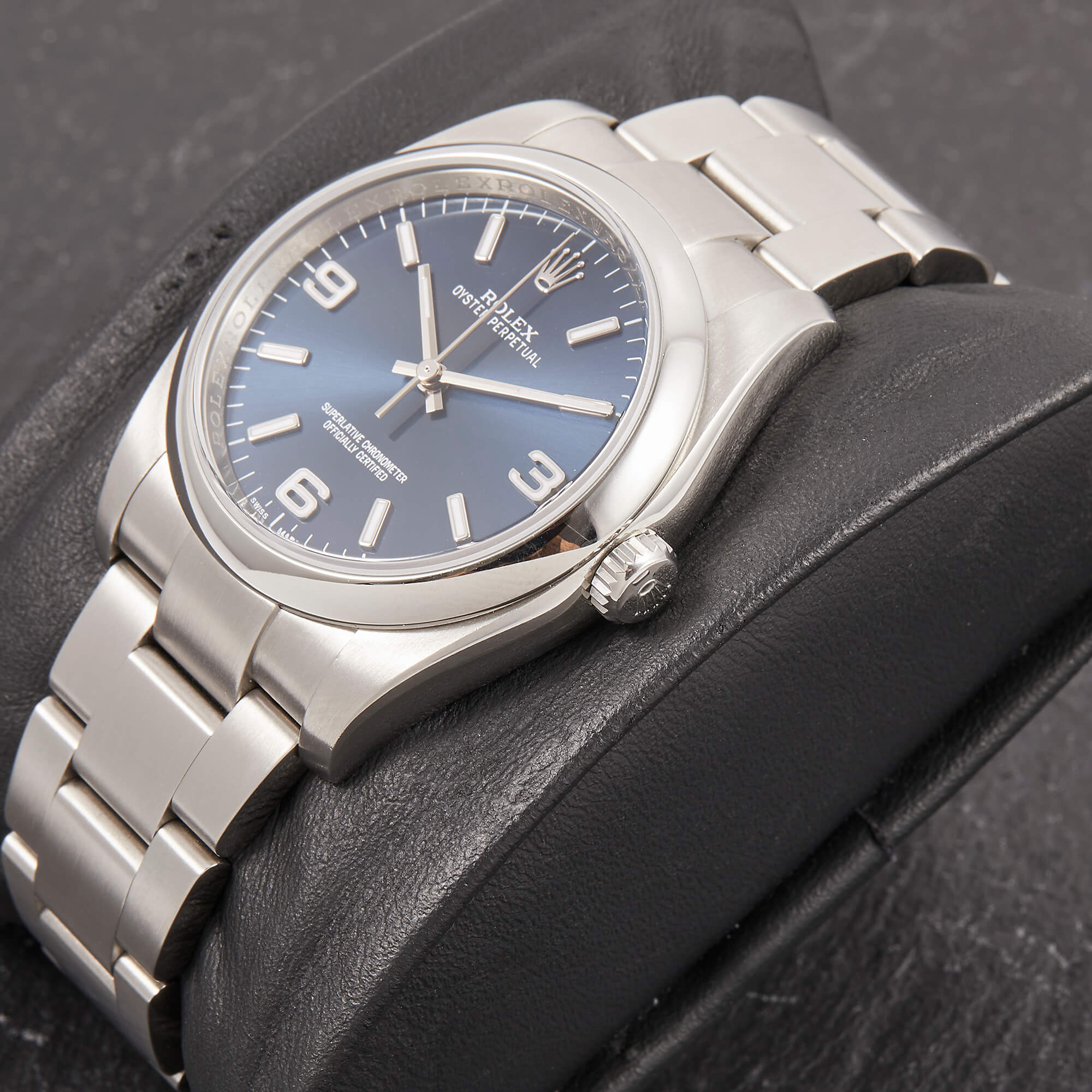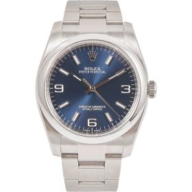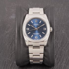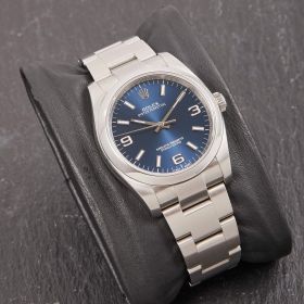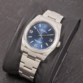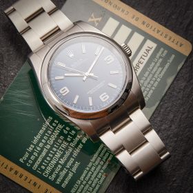 Die Rolex Oyster Perpetual Referenz 116000 mit blauem Zifferblatt. Ein wahrer Klassiker der Marke, der durch sein schlichtes und elegantes Design besticht.- Durchmesser