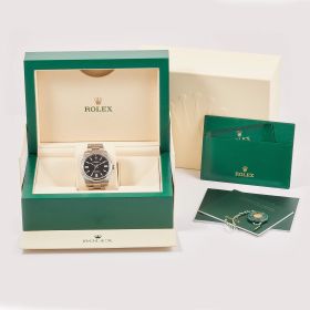 Die Rolex Oyster Perpetual 41, Referenz 124300, überzeugt mit ihrem schlichten schwarzen Zifferblatt und dem zeitlosen Oyster-Design. Die Uhr kommt im Full Set – inklusive Box und Papieren – und befindet sich in ausgezeichnetem Zustand. Ein modernes Statement mit klassischer DNA – schlicht, hochwertig und begehrt.- Durchmesser