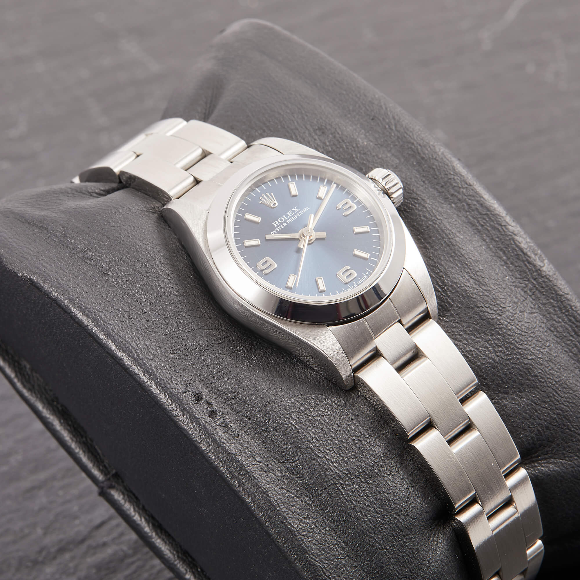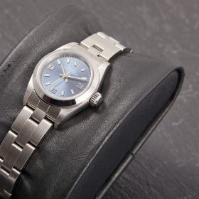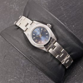 Die Rolex Oyster Perpetual 26 Referenz 67180 am Oyster-Band mit blauem Zifferblatt besticht durch ihr klassisch-sportliches Design und zeitlose Schlichtheit. Sie vereint elegantes Edelstahl-Finish mit zuverlässiger Automatik und ist ein vielseitiger, sofort tragbarer Begleiter für jeden Tag.- Durchmesser