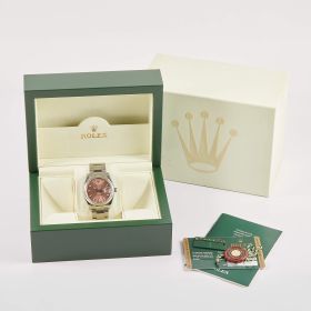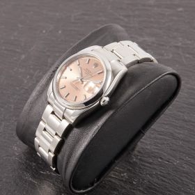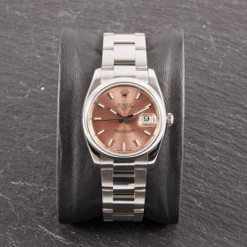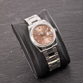 Rolex Oyster Perpetual 36, Referenz 115200 im Fullset, sowie mit dem klassichen lachsfarbenen Zifferblatt. Das Modell verbindet klassische Proportionen und steht exemplarisch für die zeitlose Eleganz der Oyster-Perpetual-Linie.- Durchmesser