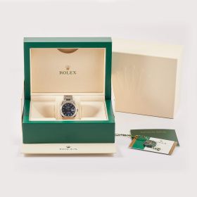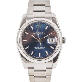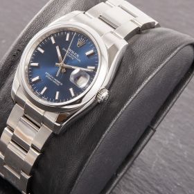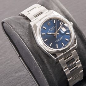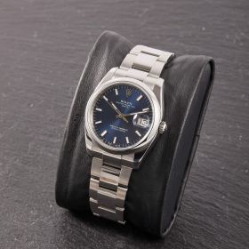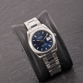 Rolex Oyster Perpetual 36, Referenz 115200 im Fullset, sowie mit dem klassichen blauen Zifferblatt. Das Modell verbindet klassische Proportionen und steht exemplarisch für die zeitlose Eleganz der Oyster-Perpetual-Linie.- Durchmesser