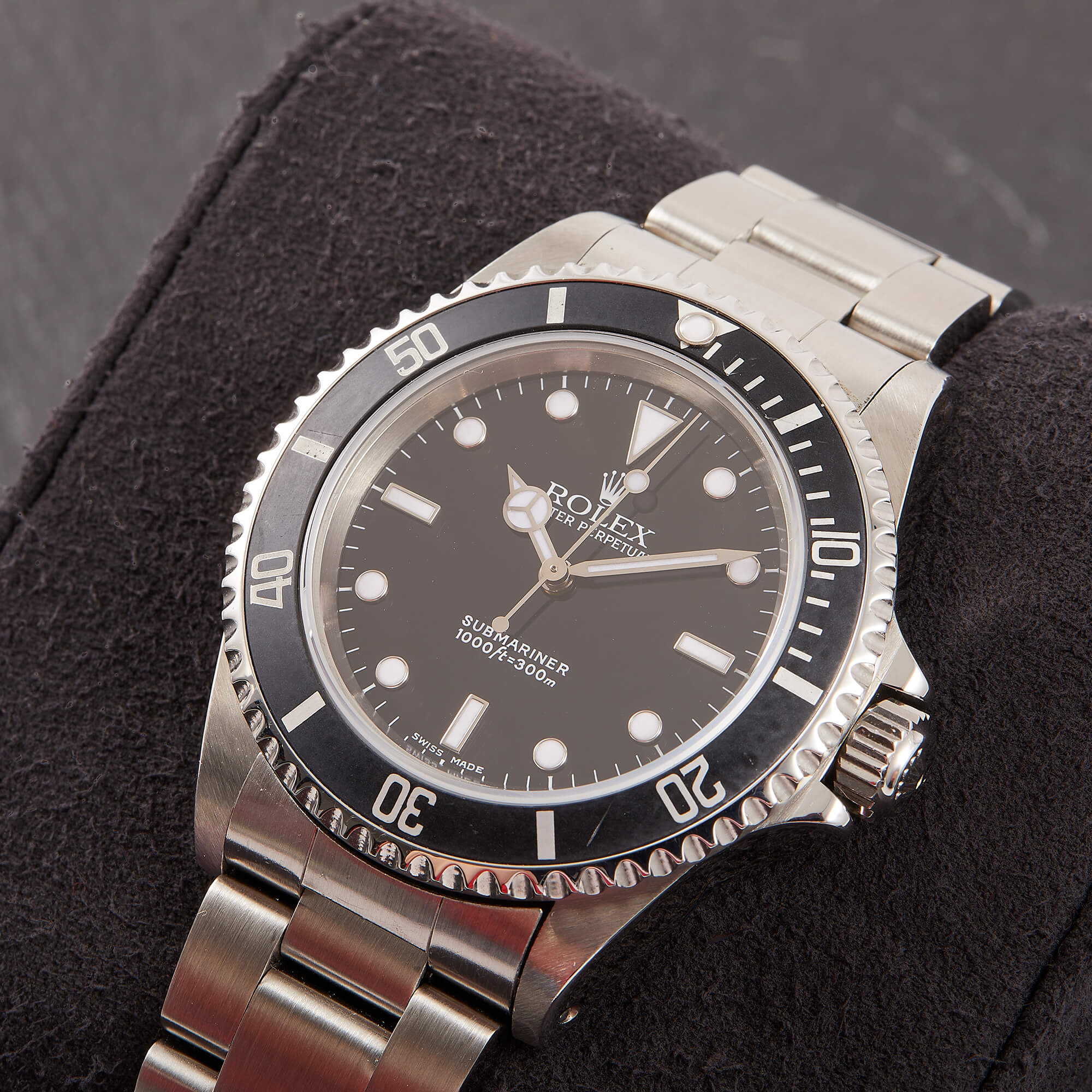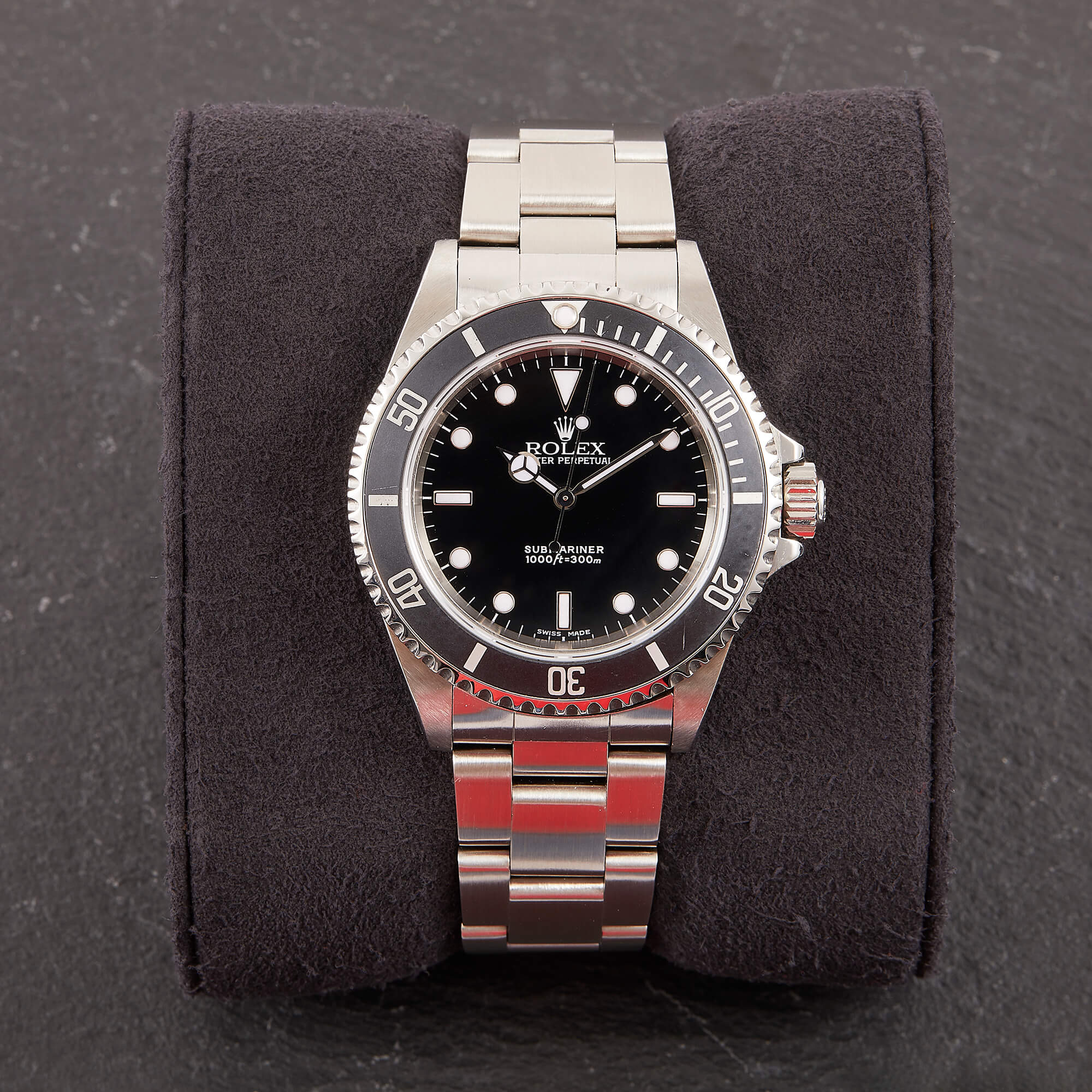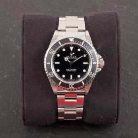 Die Rolex Submariner Referenz 14060M ist ein puristischer Taucherklassiker mit 40 mm Edelstahlgehäuse und markanter Drehlünette. Angetrieben vom robusten Automatikwerk Kaliber 3130, bietet sie präzise Zeitmessung ohne Datumskomplikation. Dieses Modell kommt mit originalen Papieren, was Authentizität und gepflegten Zustand garantiert. Die 14060M vereint ikonisches Design mit kompromissloser Funktionalität.- Durchmesser