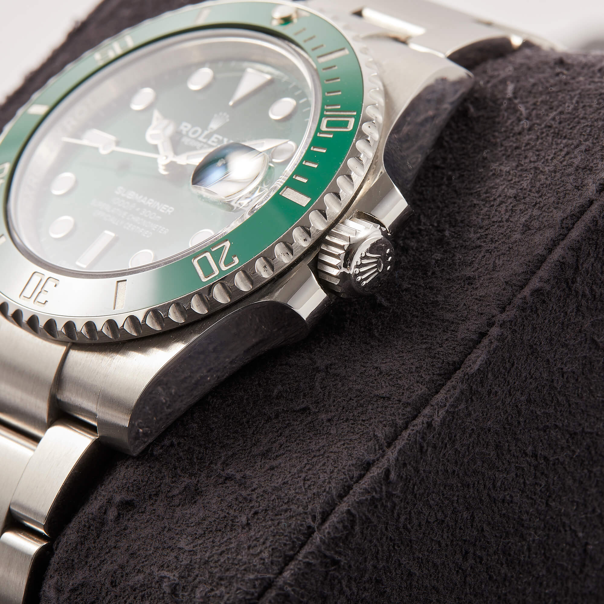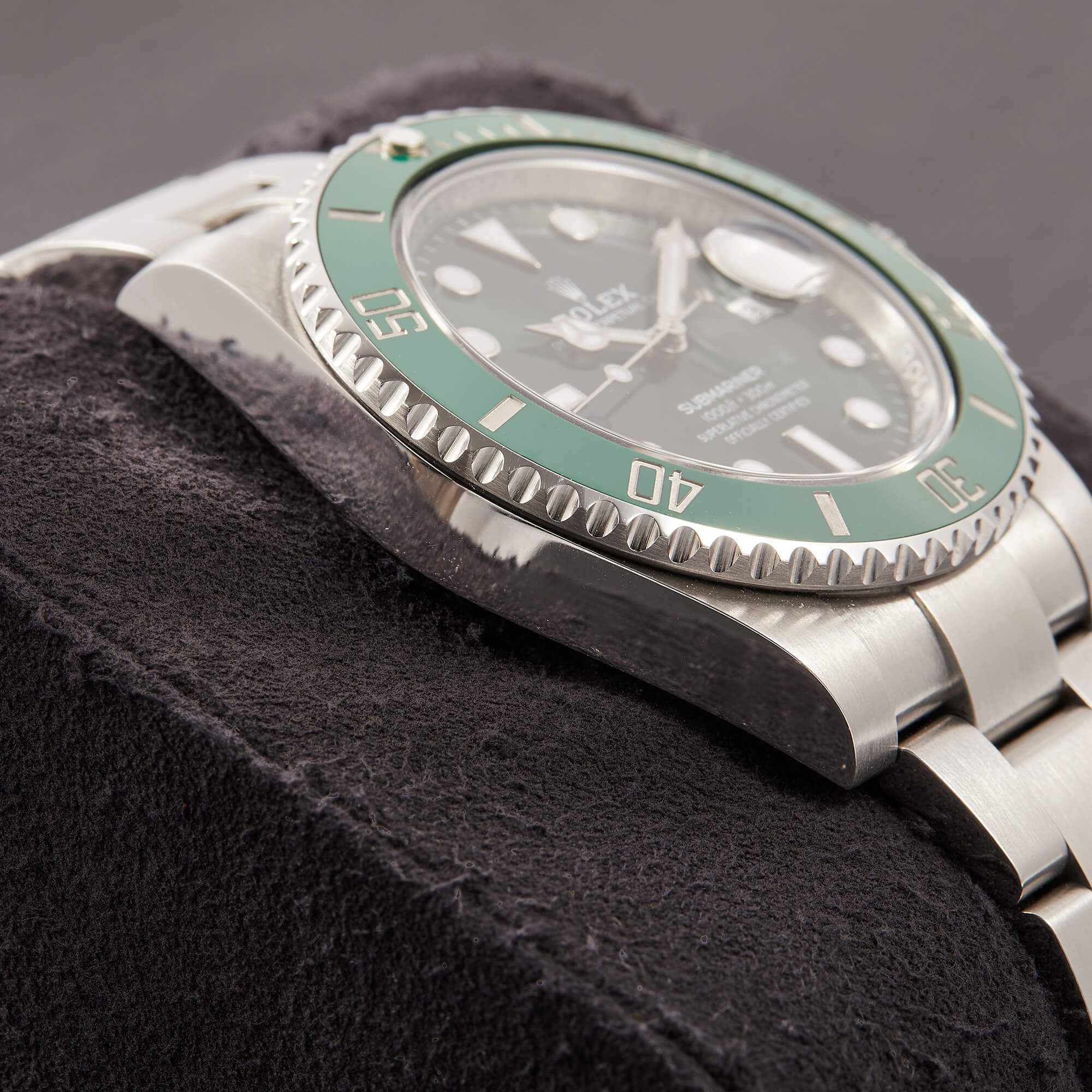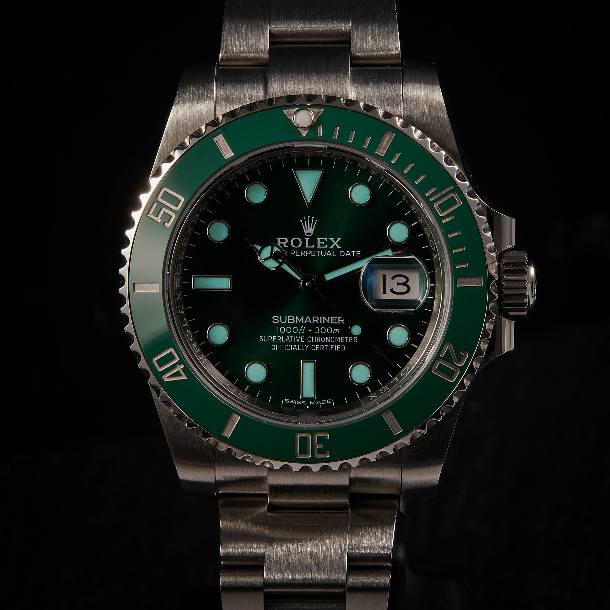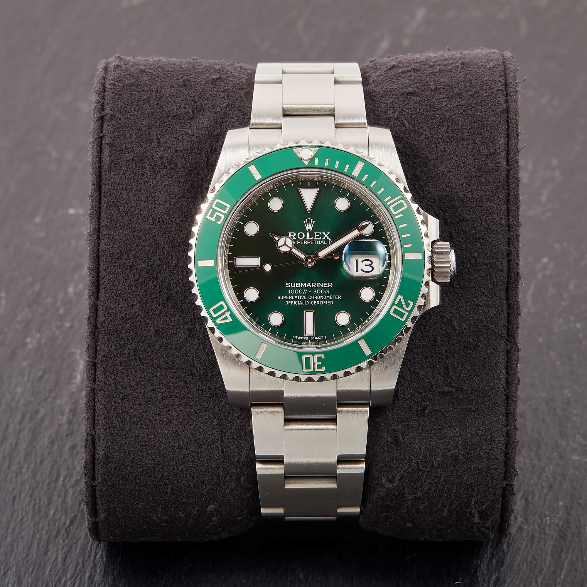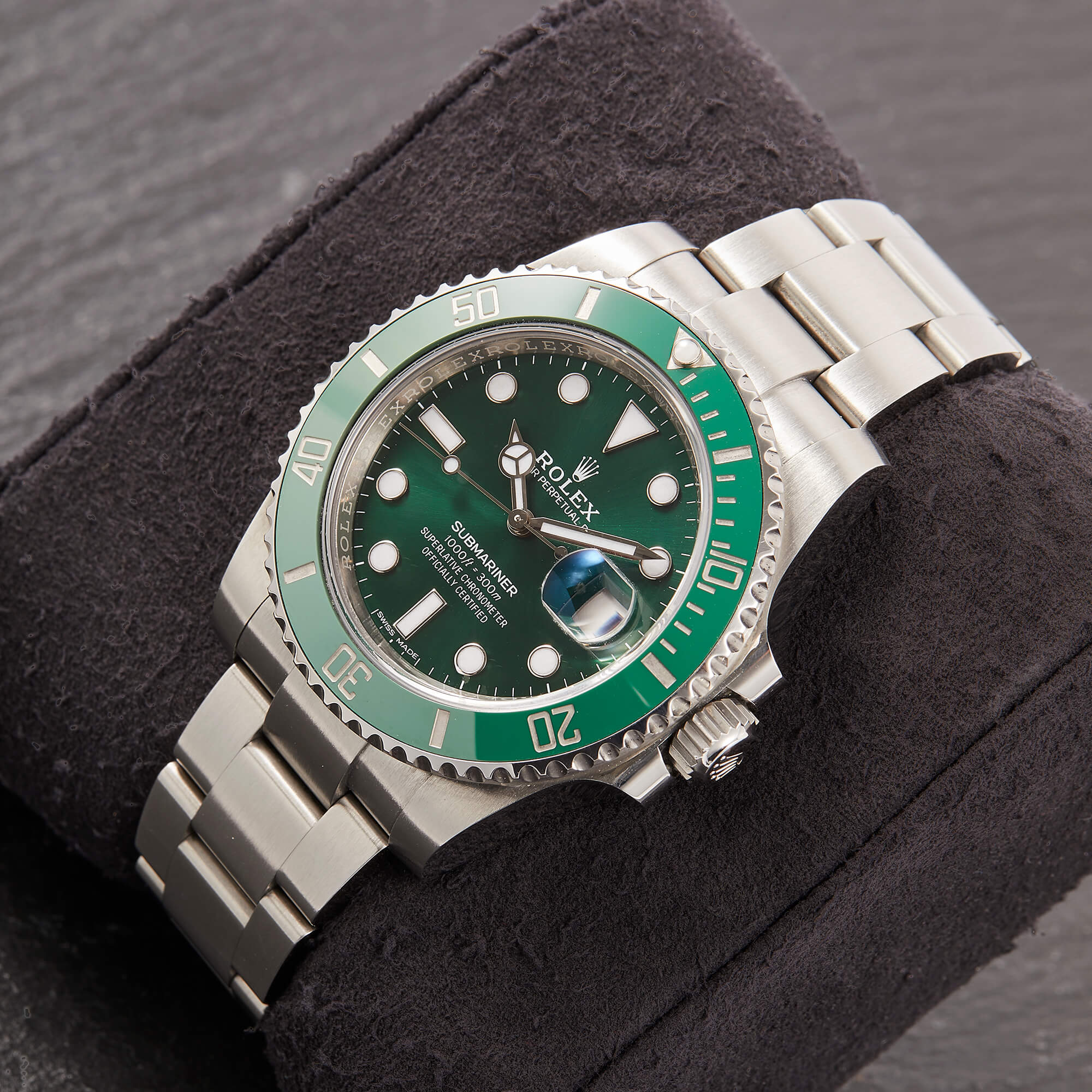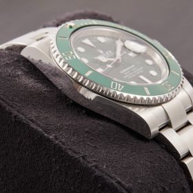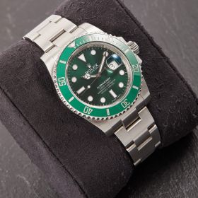 Die begehrte Submariner „Hulk“ in der Referenz 116610LV – bekannt für ihre markante grüne Lünette und das grüne Sonnenschliff-Zifferblatt. Die Uhr befindet sich in sehr schönem Zustand. Ein echtes Highlight für Sammler und Liebhaber sportlich-ikonischer Rolex-Modelle.- Durchmesser