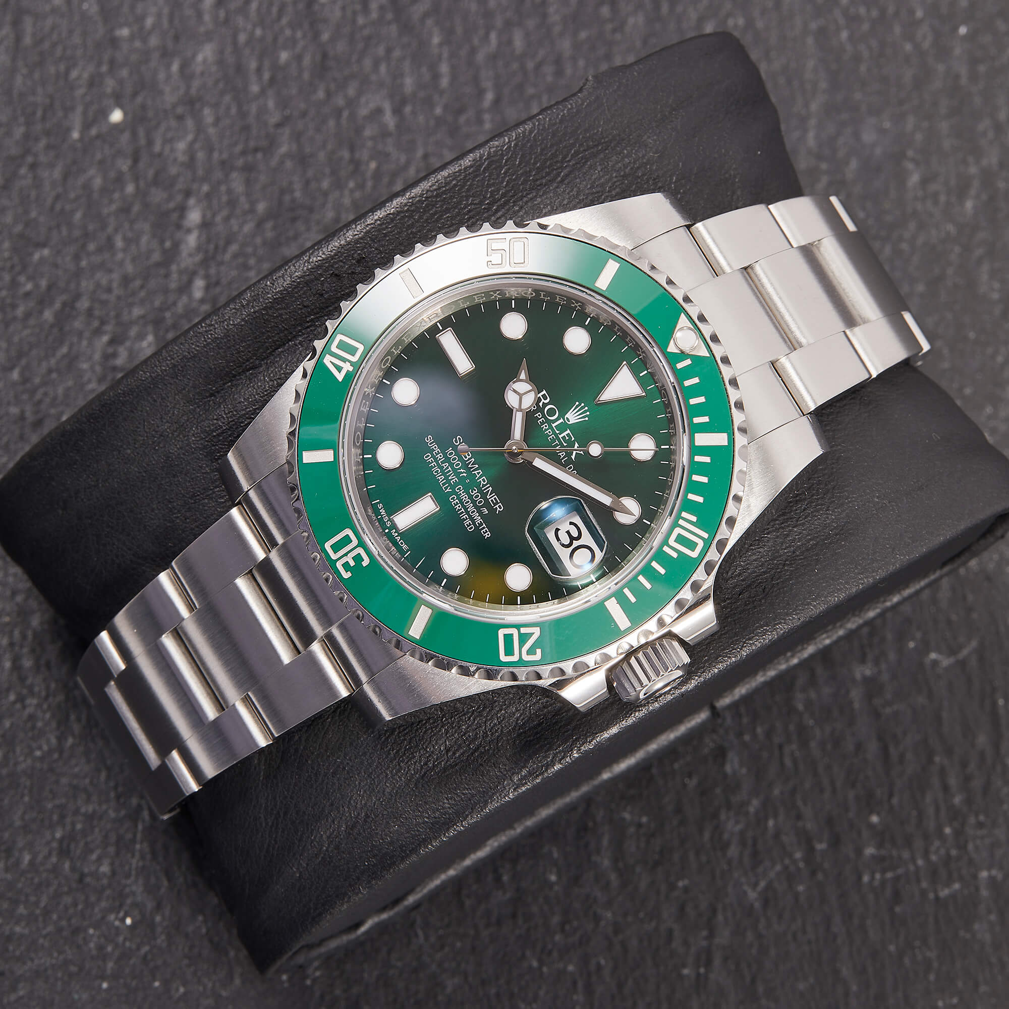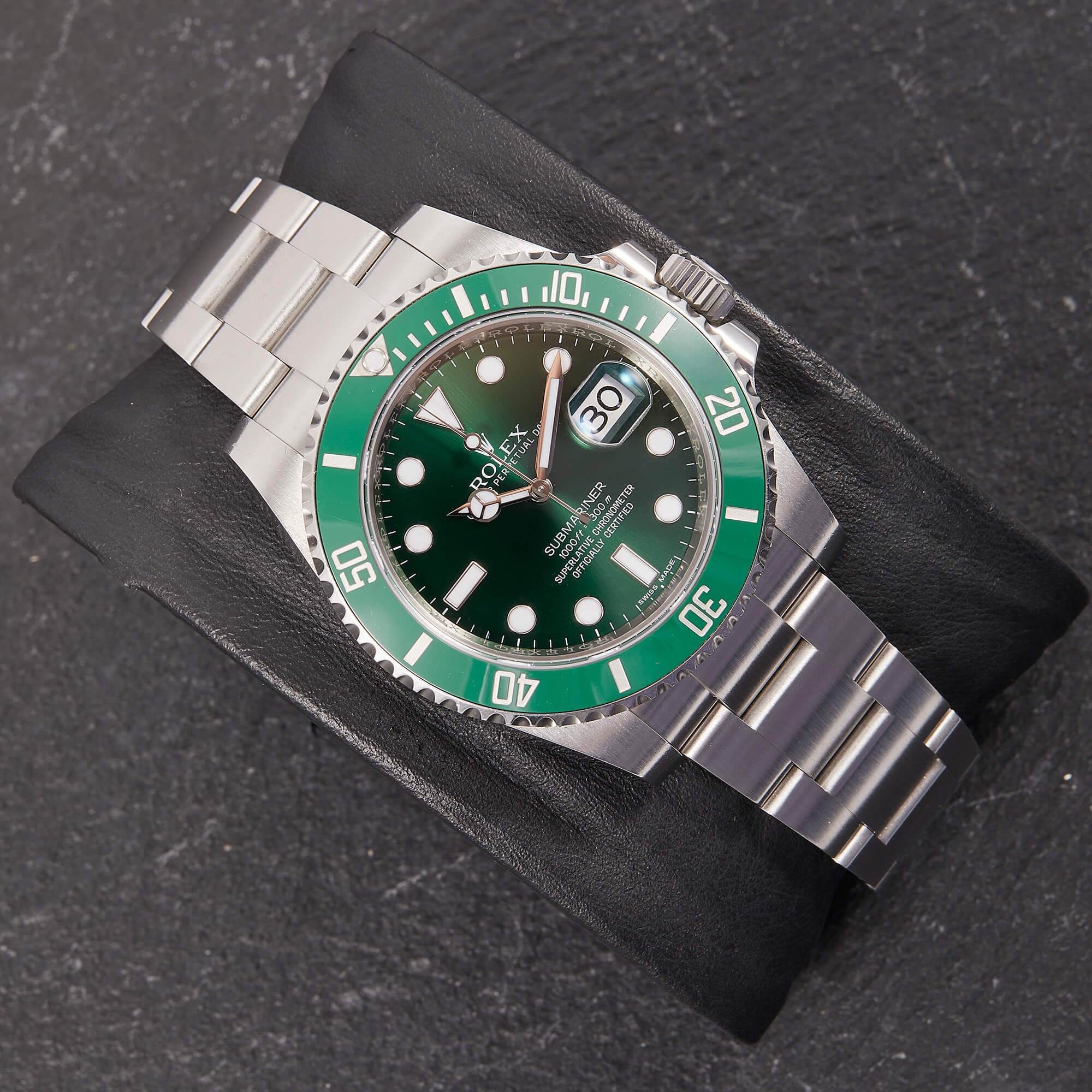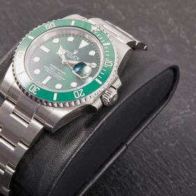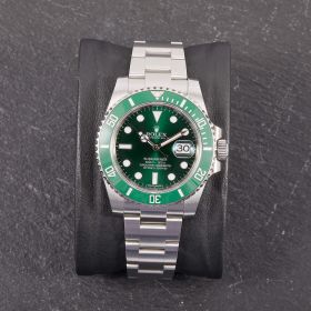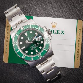 Die begehrte Submariner „Hulk“ in der Referenz 116610LV – bekannt für ihre markante grüne Lünette und das grüne Sonnenschliff-Zifferblatt. Die Uhr befindet sich in sehr schönem Zustand. Ein echtes Highlight für Sammler und Liebhaber sportlich-ikonischer Rolex-Modelle.- Durchmesser