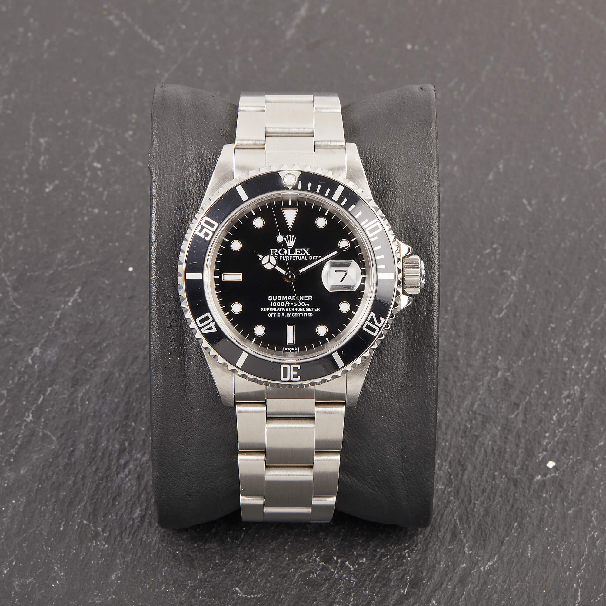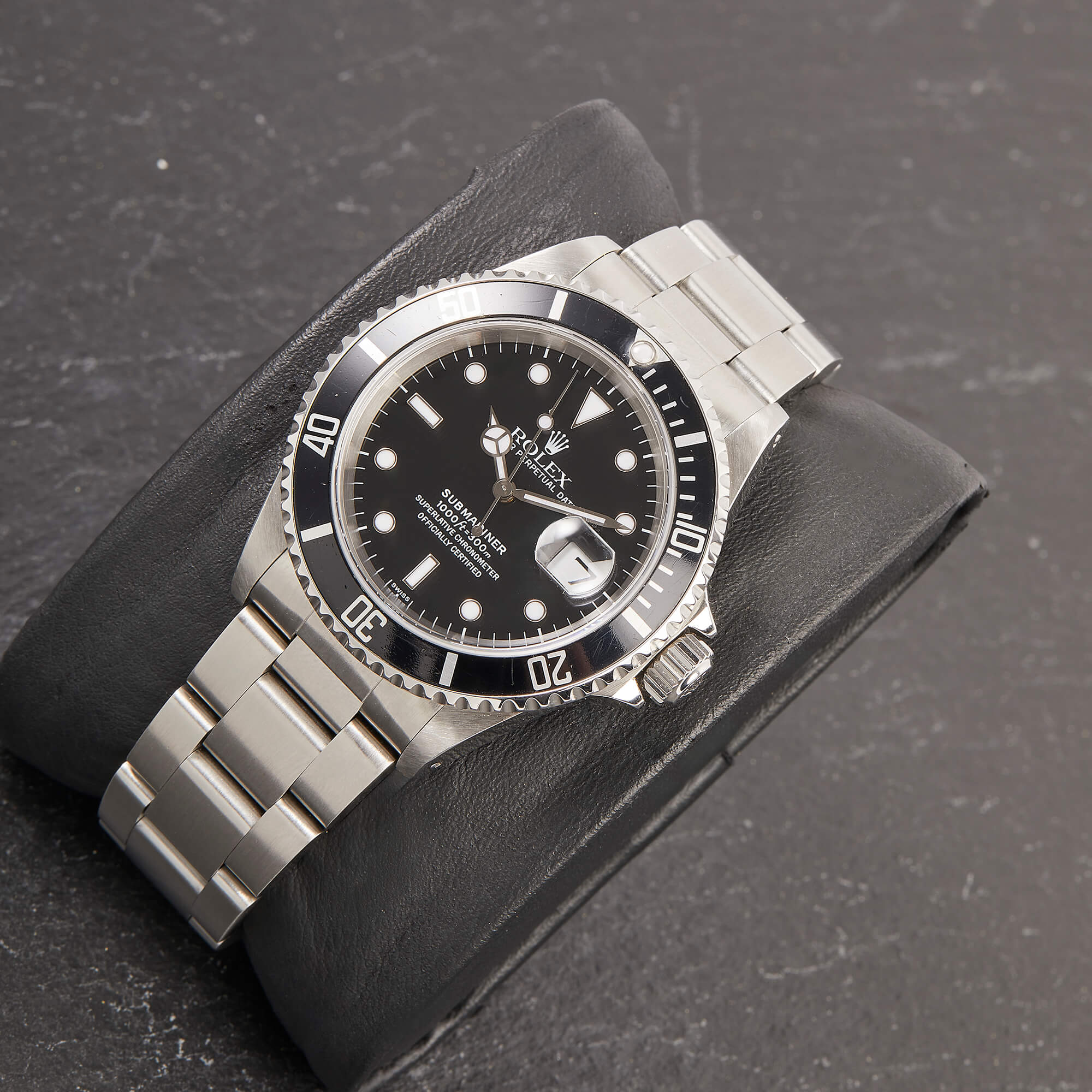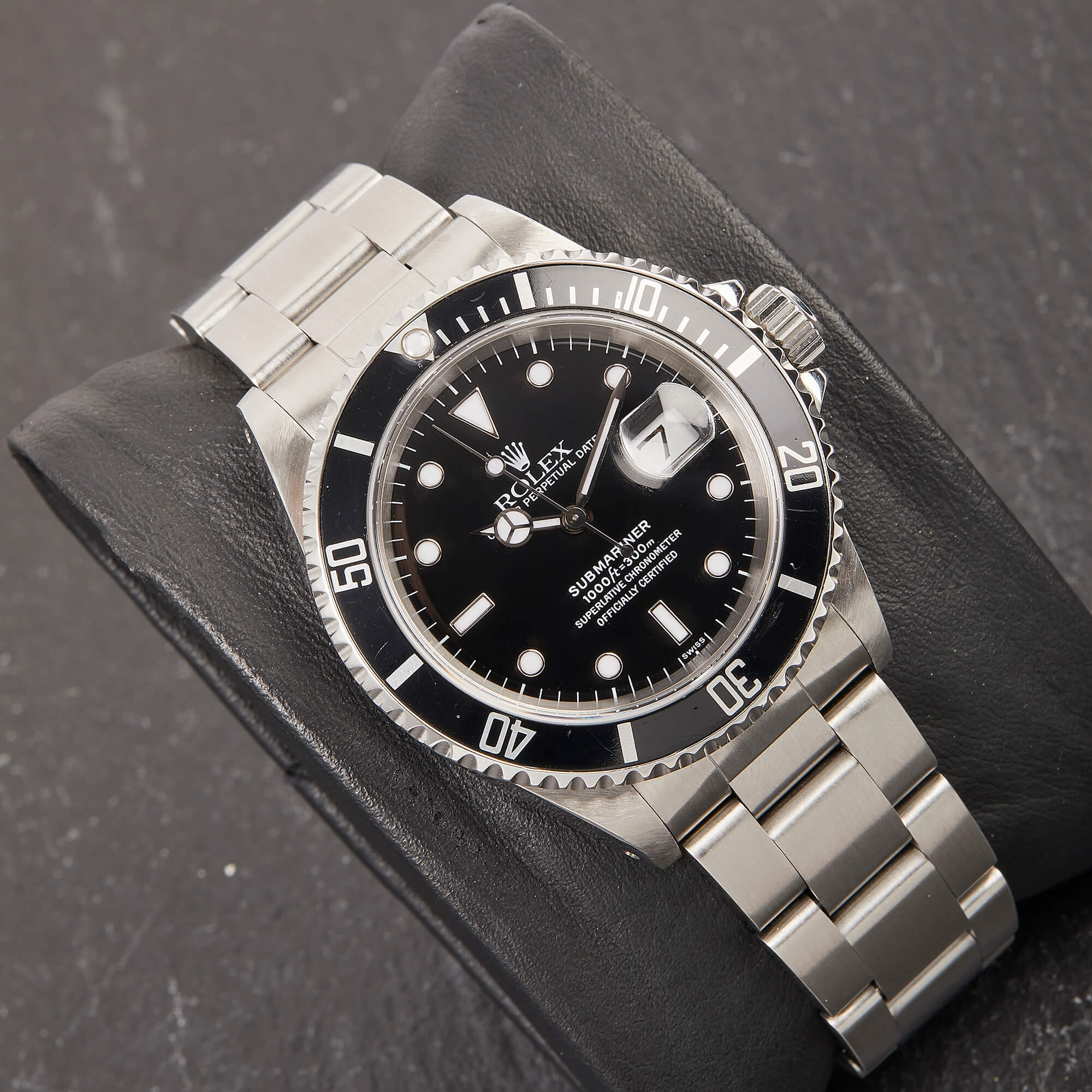 Die Rolex Submariner Referenz 16610LN ist ein puristischer Taucherklassiker mit 40 mm Edelstahlgehäuse und markanter Drehlünette. Angetrieben vom robusten Automatikwerk Kaliber 3130, bietet sie präzise Zeitmessung mit Datumskomplikation. Die 16610LN vereint ikonisches Design mit kompromissloser Funktionalität.- Durchmesser