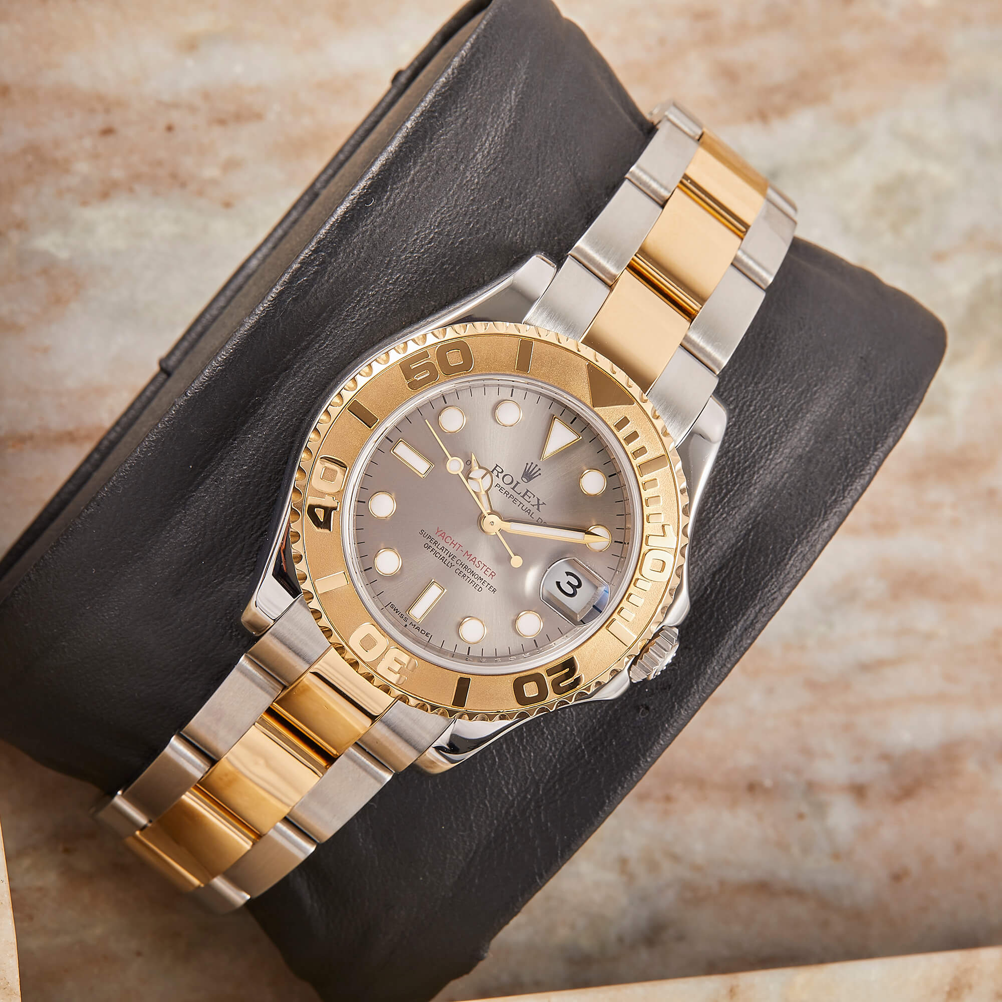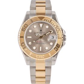 Die Rolex Yacht-Master 35, Referenz 168623, verbindet sportliche Eleganz mit luxuriösen Details. Das Gehäuse und die Lünette aus Stahl und Gelbgold verleihen der Uhr eine edle Präsenz, während das graue Zifferblatt für eine besondere Optik sorgt. Diese Version im 35-mm-Format ist vielseitig tragbar und wirkt zugleich markant wie stilvoll. Die Uhr befindet sich in schönem Zustand und kommt im Fullset inkl. Servicecard – ein außergewöhnliches Modell mit maritimem Charakter und hochwertiger Ausstrahlung.- Durchmesser