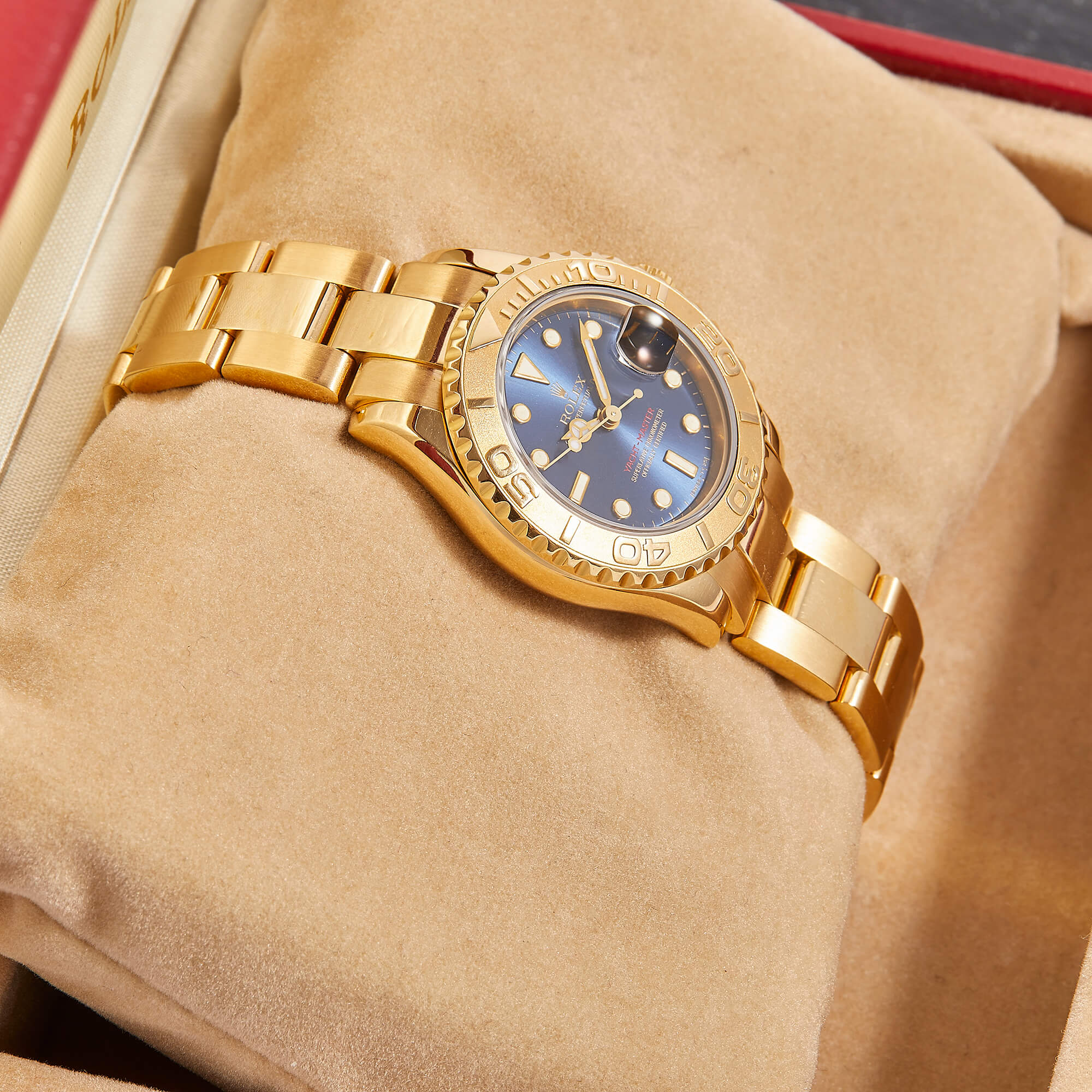 Rolex Yacht-Master Referenz 168628 mit einem Gehäusedurchmesser von 29 mm. Die Uhr kommt inklusive Box sowie Garantieunterlagen und in einem hervorragenden Zustand. Ein sportlich-elegantes Modell mit zeitlosem Design.