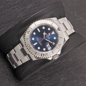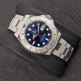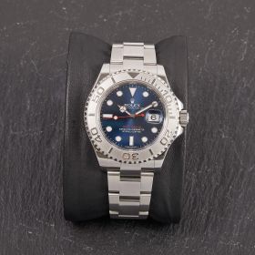 Die Rolex Yachtmaster 16622 ist ein wahres Meisterwerk der Luxusuhrenwelt, das sich durch eine edle Kombination aus Platinlünette und Edelstahlgehäuse auszeichnet. Das blaue Zifferblatt verleiht der Uhr eine raffinierte Eleganz und eine besondere Tiefe. Die Uhr verfügt über die originale Garantiekarte.- Durchmesser