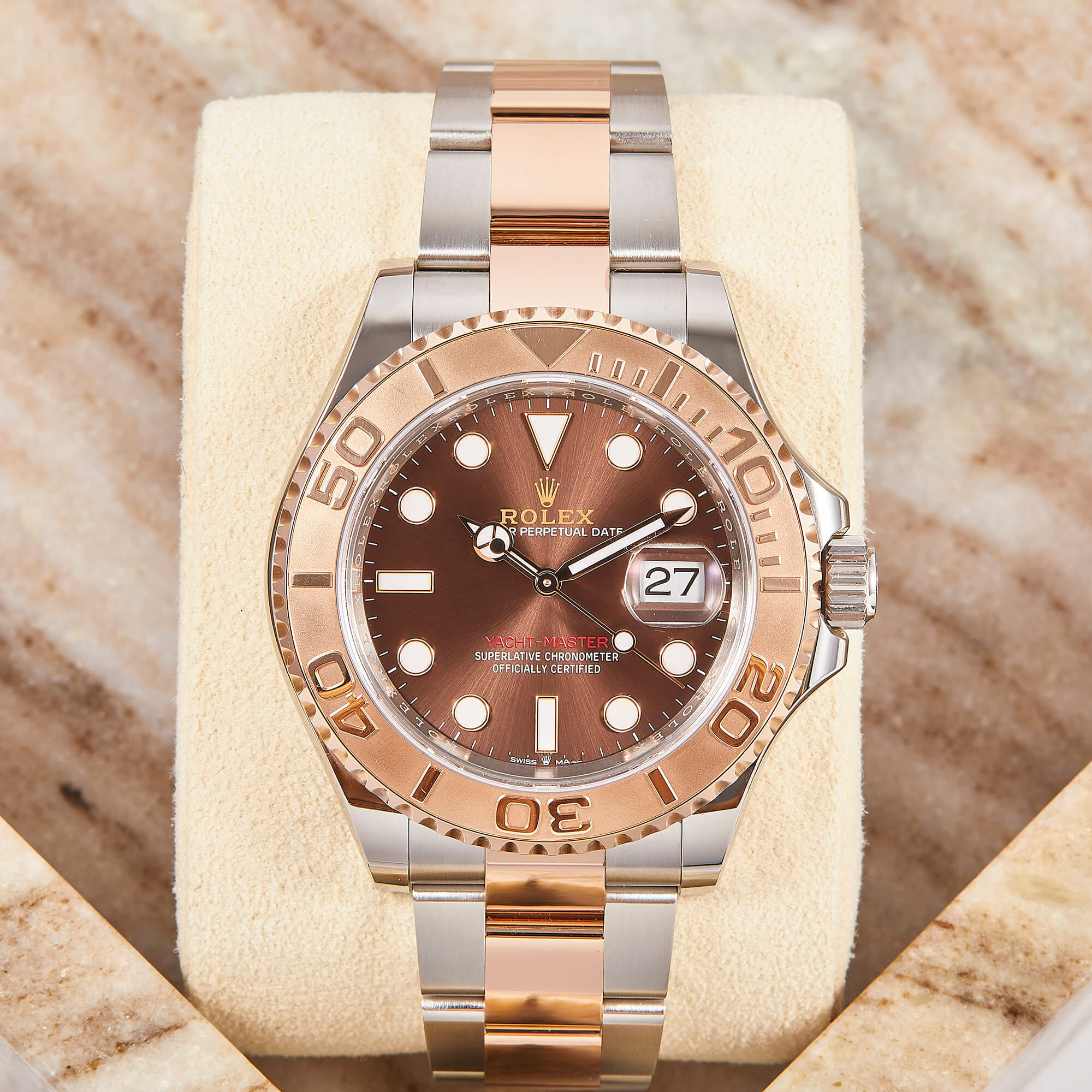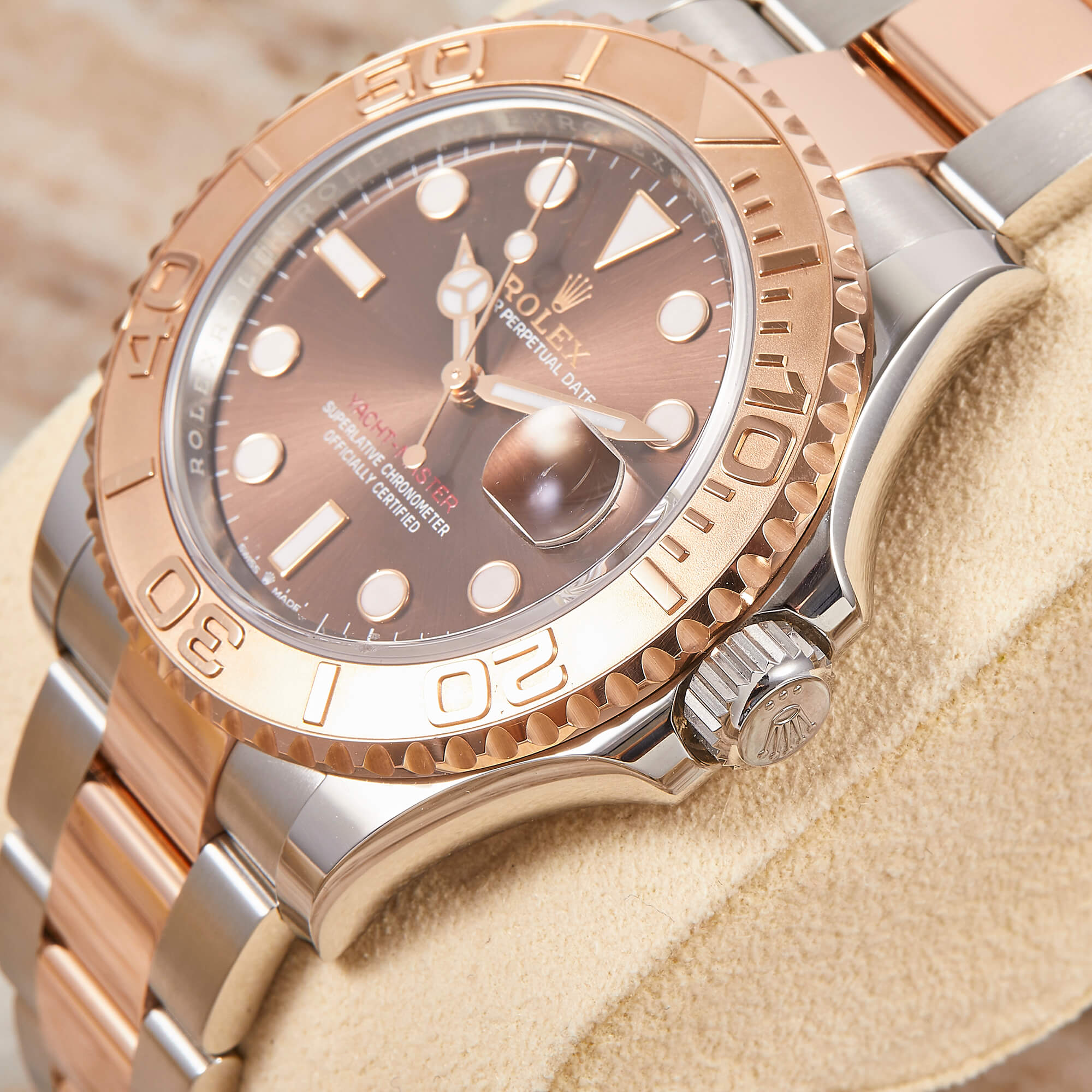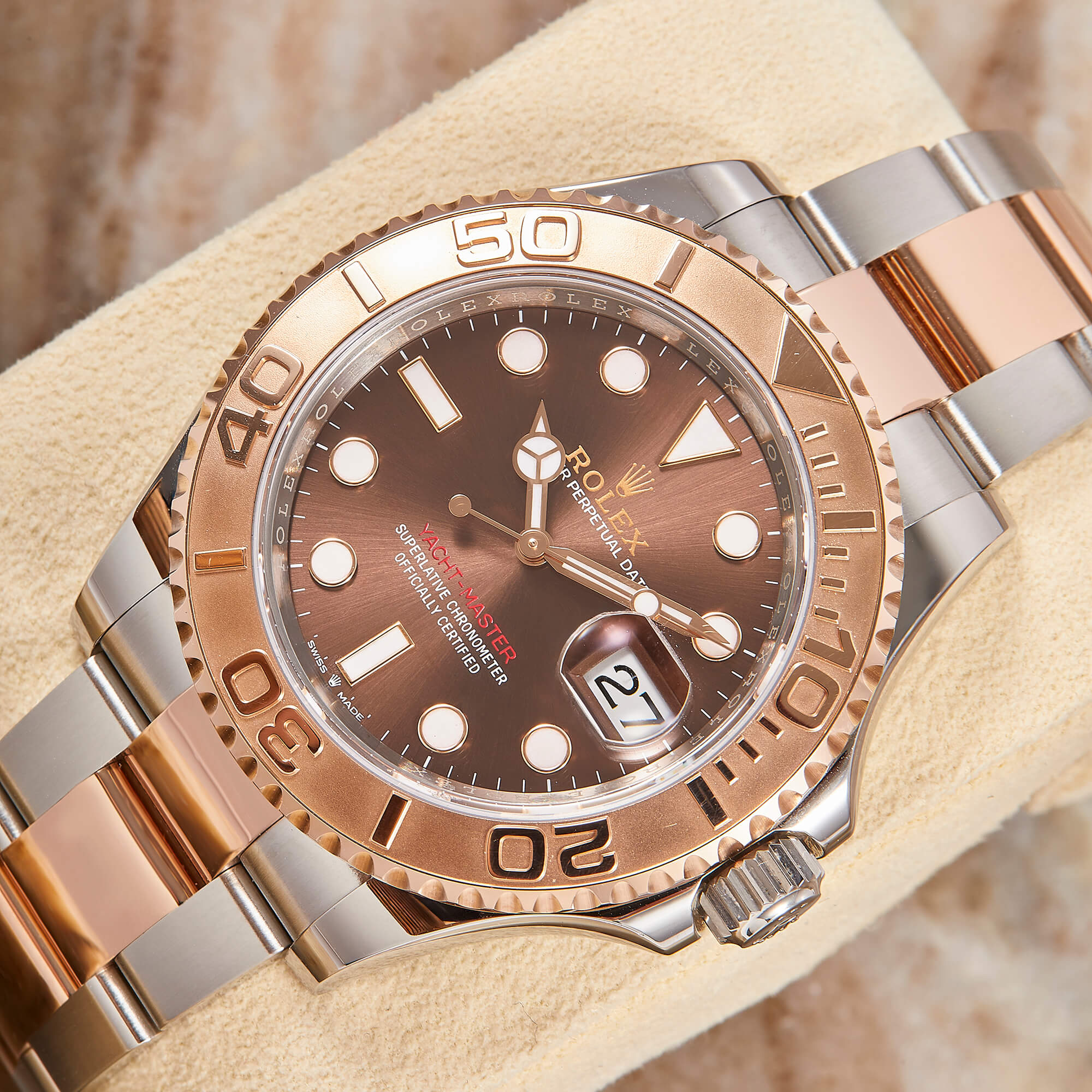 Rolex Yacht-Master 126621 Edler Luxus-Sportler in Rolesor Everose (Stahl und Roségold) mit 40 mm Gehäuse, braunem Zifferblatt und drehbarer Roségold-Lünette. Das elegante Farbspiel verleiht der Uhr maritimen Charme mit modernem Understatement. Kommt im Fullset mit Box und Papieren.- Durchmesser