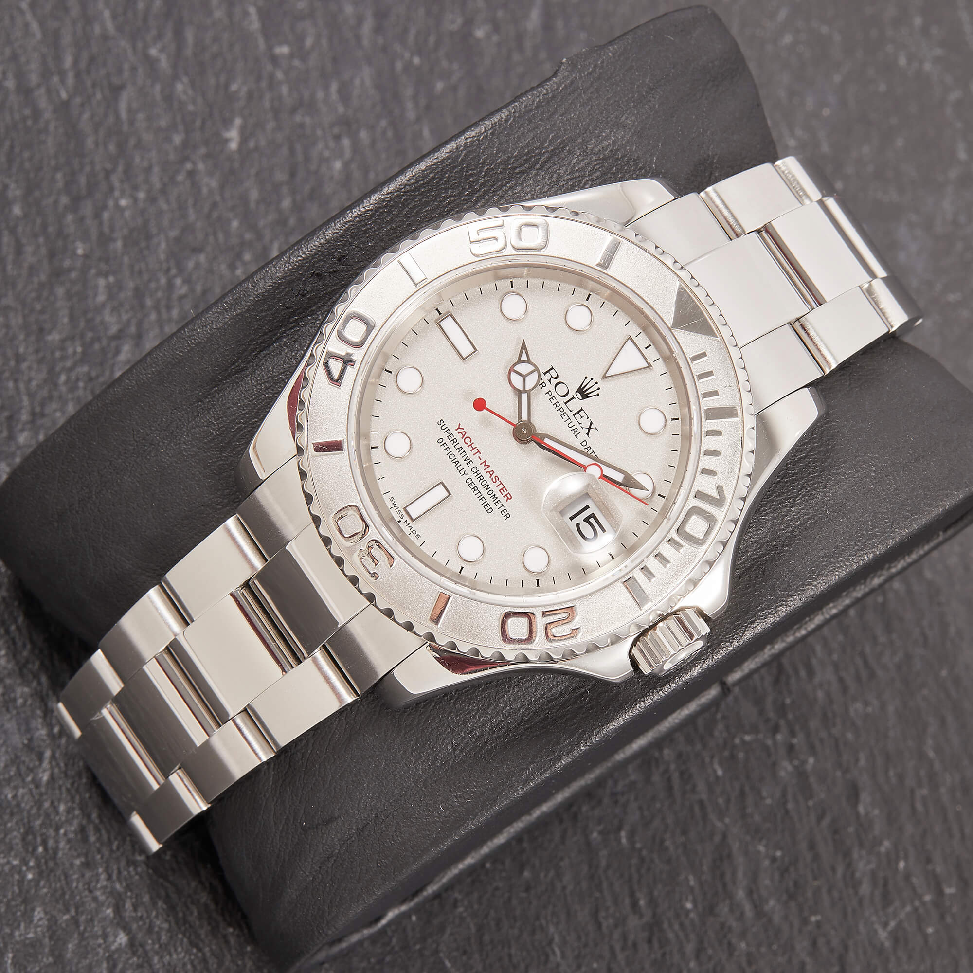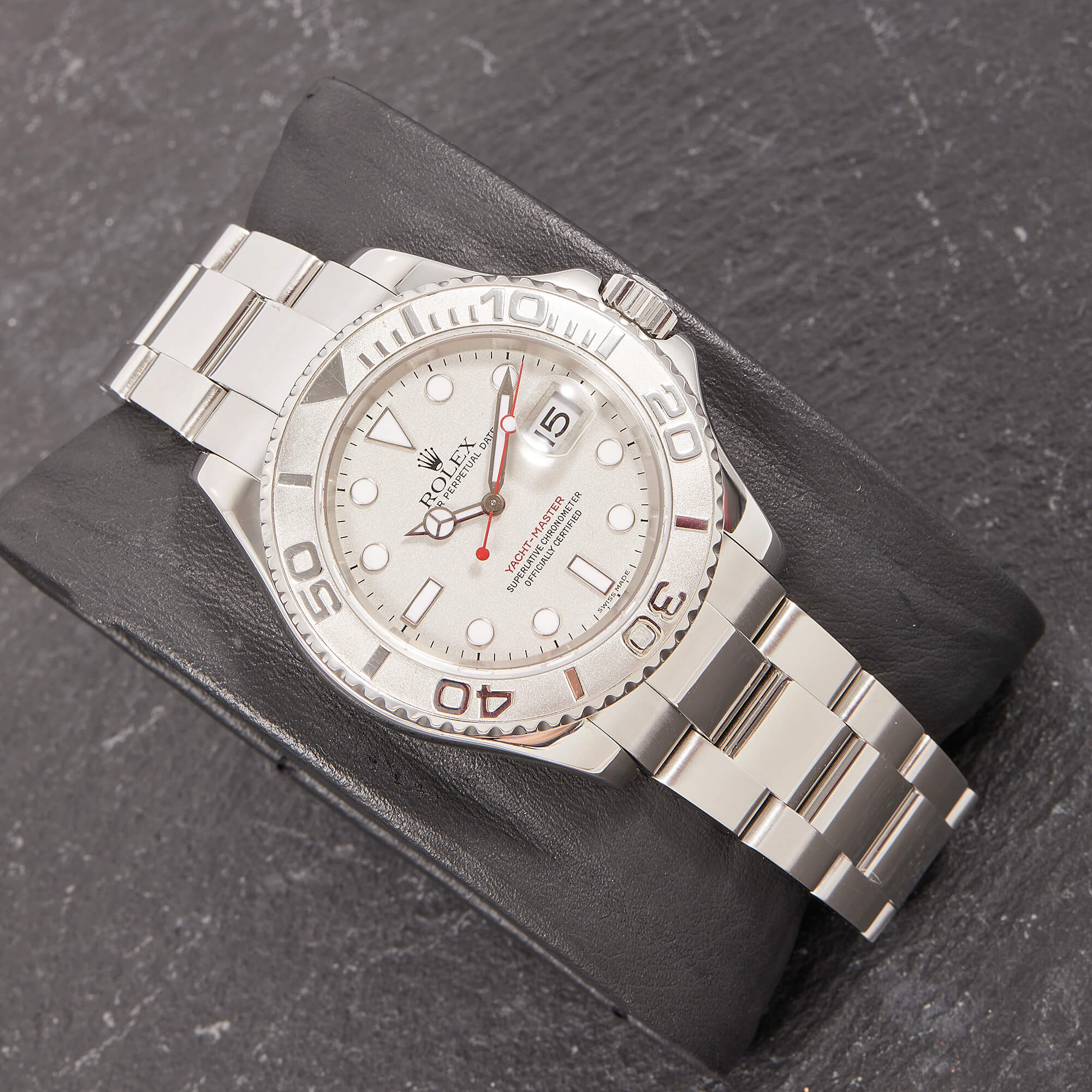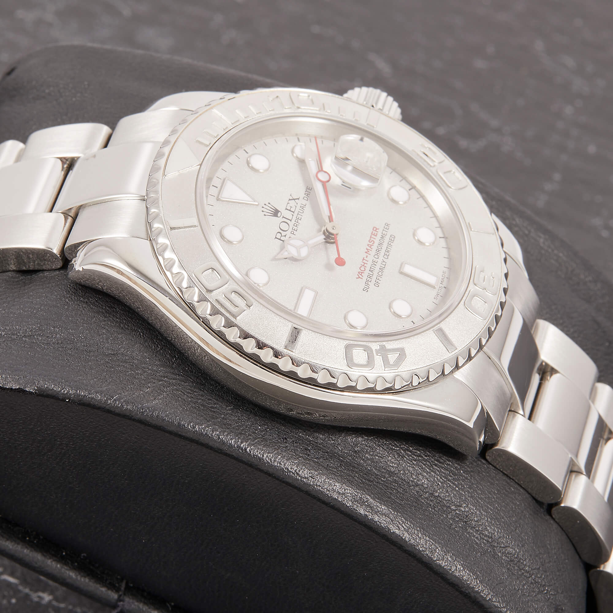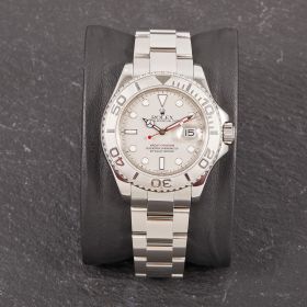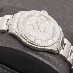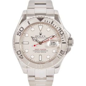Die Rolex Yacht-Master 16622 ist ein wahres Meisterwerk der Luxusuhrenwelt, das sich durch eine edle Kombination aus Platinlünette und Edelstahlgehäuse auszeichnet. Das silberne Platin-Zifferblatt verleiht der Uhr eine raffinierte Eleganz und eine besondere Tiefe.- Durchmesser