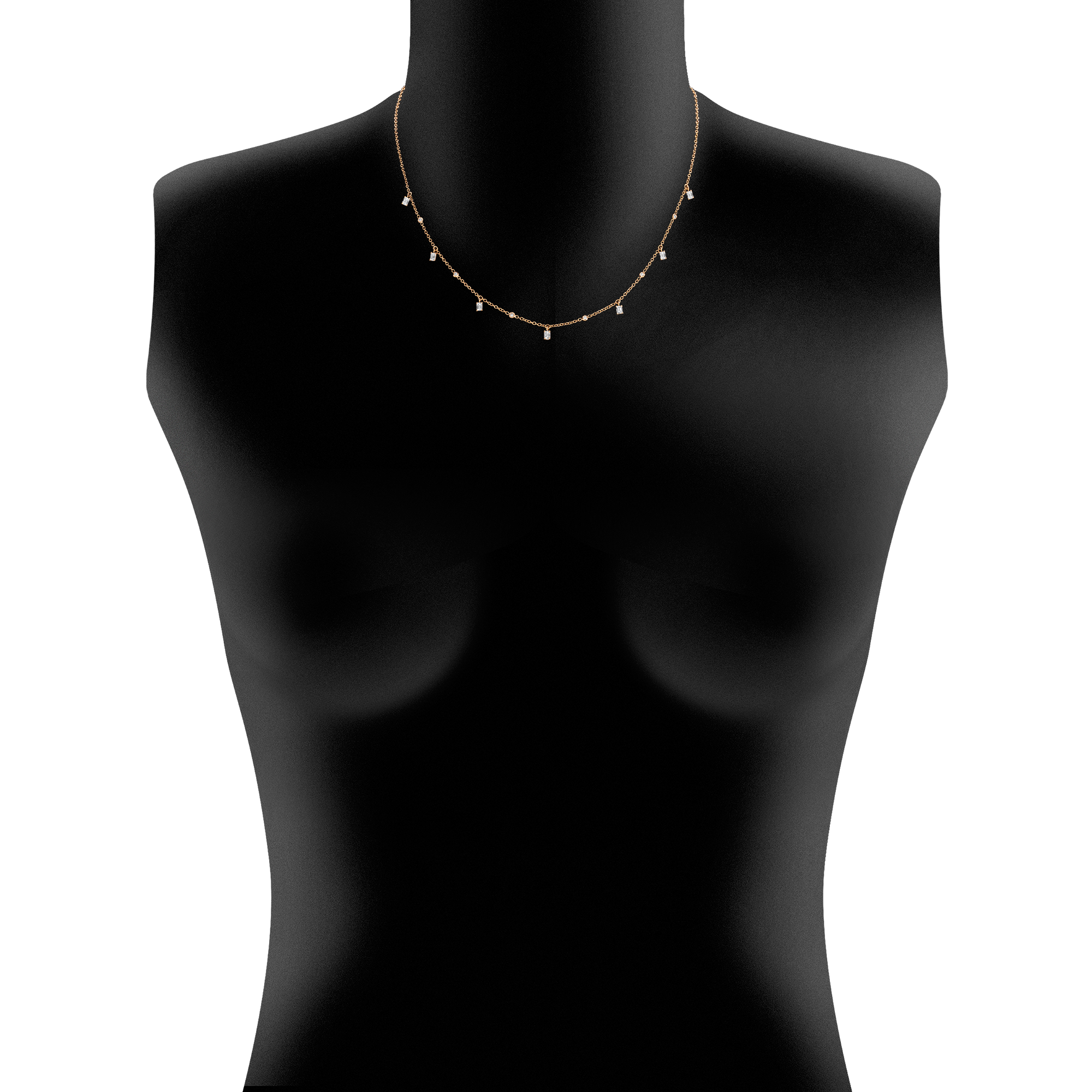 Collier aus 750/- Rotgold mit Diamanten im Emerald-Schliff (0,71 ct.) und Brillanten (0,12 ct.)Produktspezifikationen